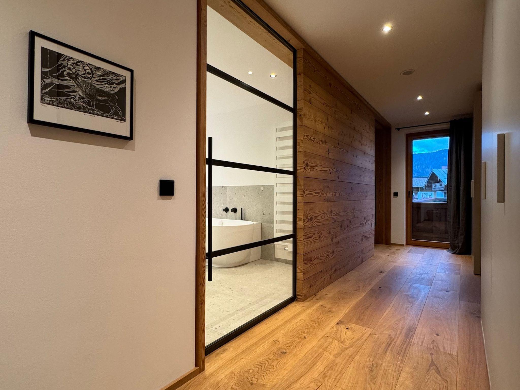 Das Unterberg21 interpretiert den alpenländischen Architekturstil neu - es vereint traditionelle Materialien und Handwerkskunst mit modernen Designelementen. Gebürstetes Lärchenholz bestimmt innen wie außen den Stil des Hauses, kombiniert mit handgeschmiedeten Einrichtungselementen, antiken Möbelstücken und einer luxuriösen Ausstattung. Im Herzen der bayerischen Alpen bietet das Unterberg21 einen perfekten Erholungs- und Wohlfühlort für Liebhaber von Natur und Design gleichermaßen. Das besondere Raumkonzept in Kombination mit der großzügigen Terrasse und dem umlaufenden Balkon bieten wunderbare Ausblicke in das umliegende Bergpanorama.