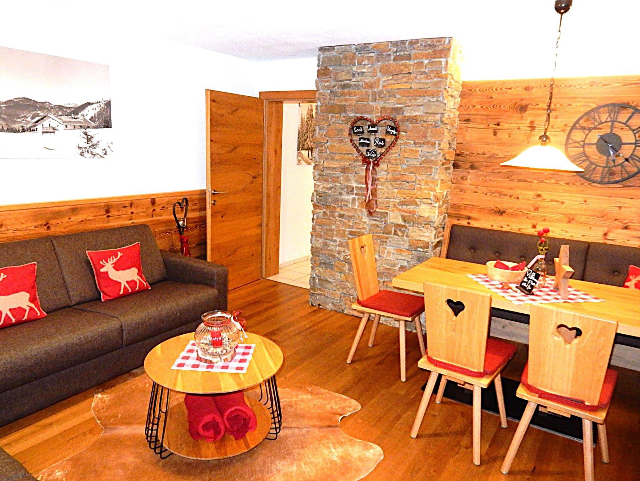 Die bezaubernde, lichtduchflutete Drei-Raum-Wohnung Klausenberg mit 75 m² Wohnfläche lässt keine Wünsche offen und begeistert mit einem wunderschön harmonisch und sehr stilvoll eingerichteten Wohnraum mit Naturholzmöbeln und Natursteinmauer, lauschiger großer Essecke, zwei kuscheligen Sofa´s sowie einem Flachbild-TV. Auch die mit viel Liebe zum Detail eingerichteten zwei separaten Schlafräume, jeweils mit komfortablen Doppelbett, sorgen für ein erholsames Schlafvergnügen. In der bestens ausgestatteten Wohnküche mit Spülmaschine und schicker Essecke finden Sie alles, was Sie zum Zubereiten Ihrer Urlaubsschmankerl brauchen. Ein modernes Bad mit flauschigen Hand-/Duschtüchern und Föhn sowie ein großer, lauschiger Rundum-Balkon mit Mittag- und Abendsonne und traumhaften Bergblick erwartet Sie...