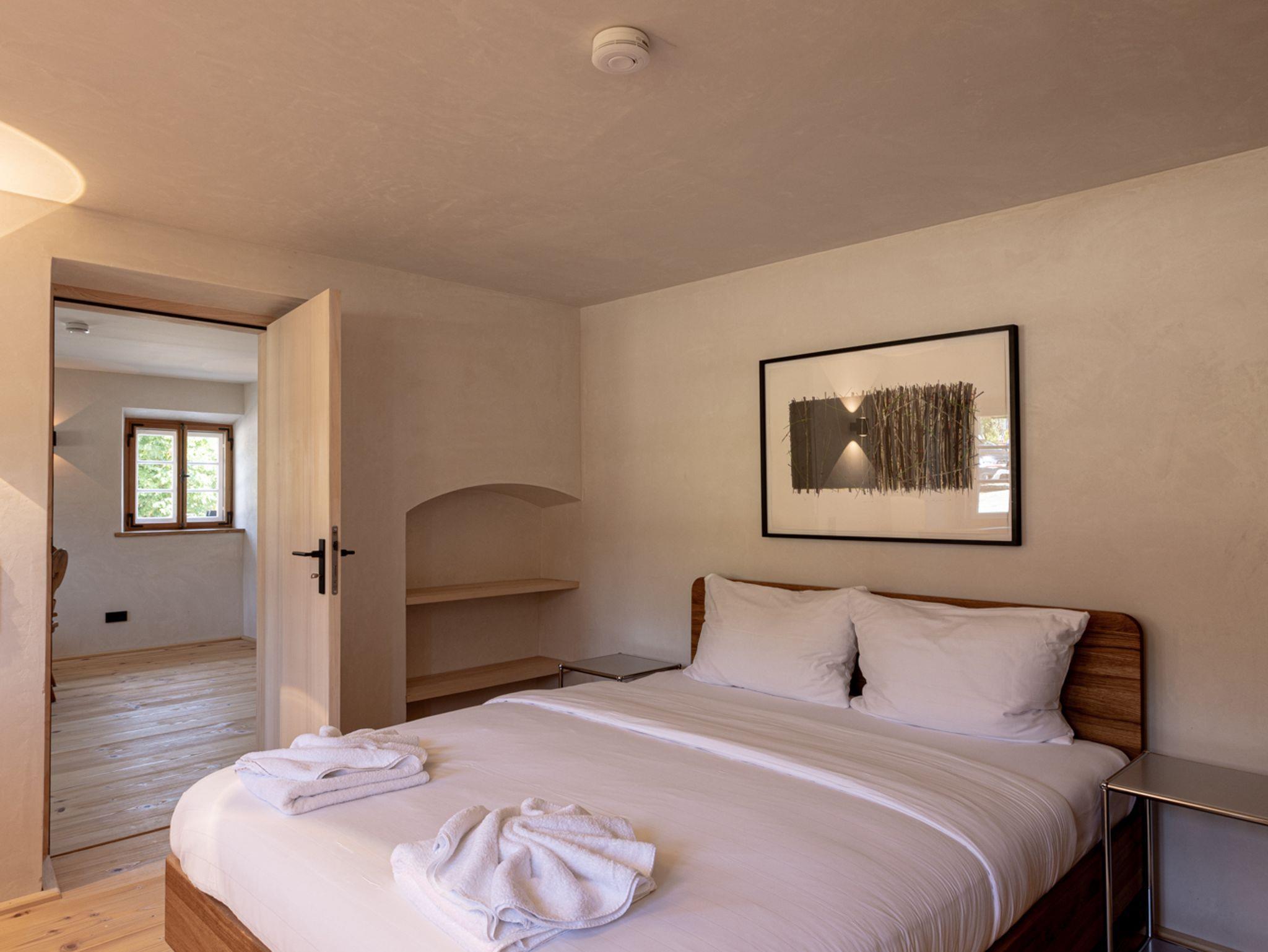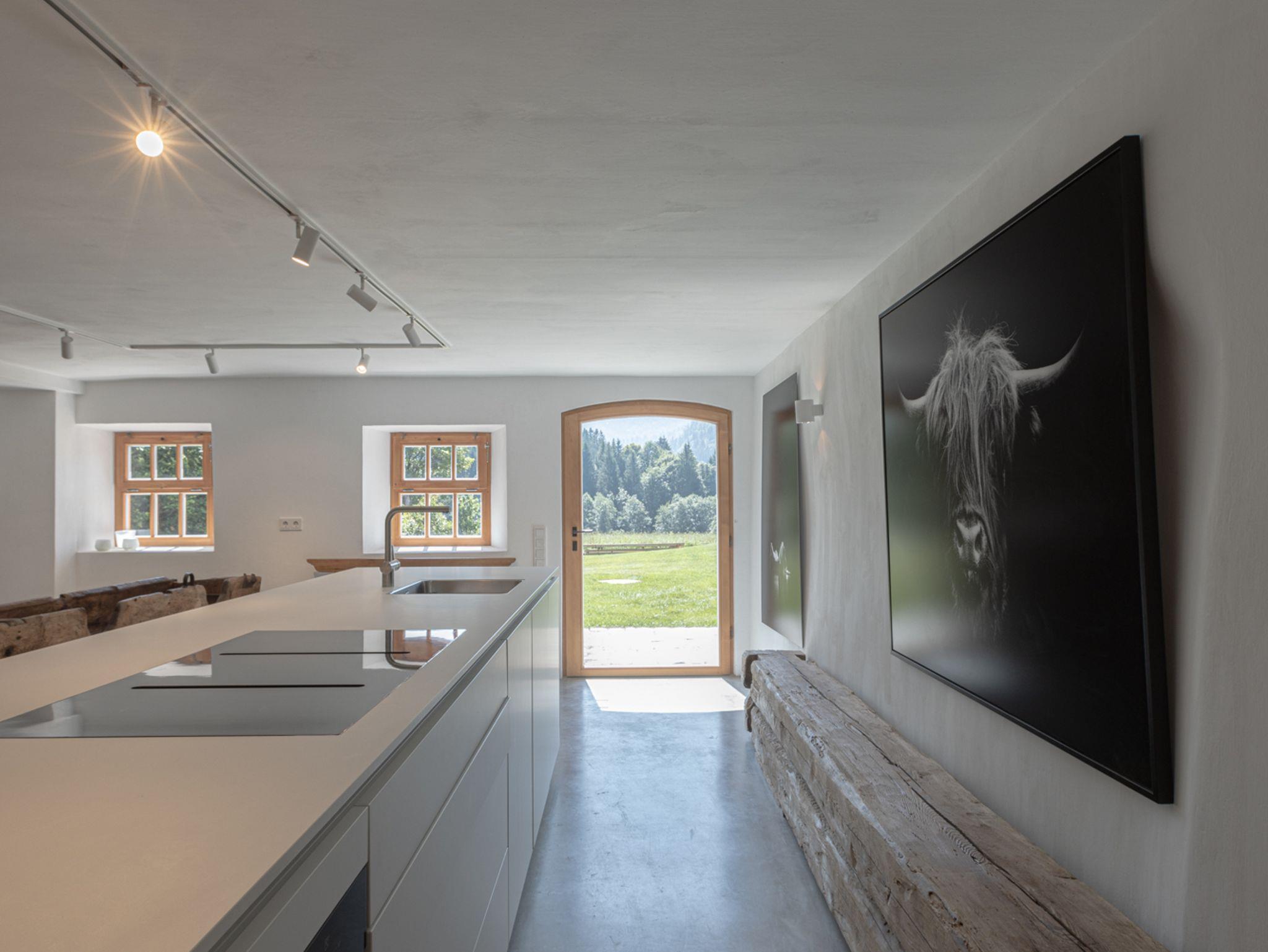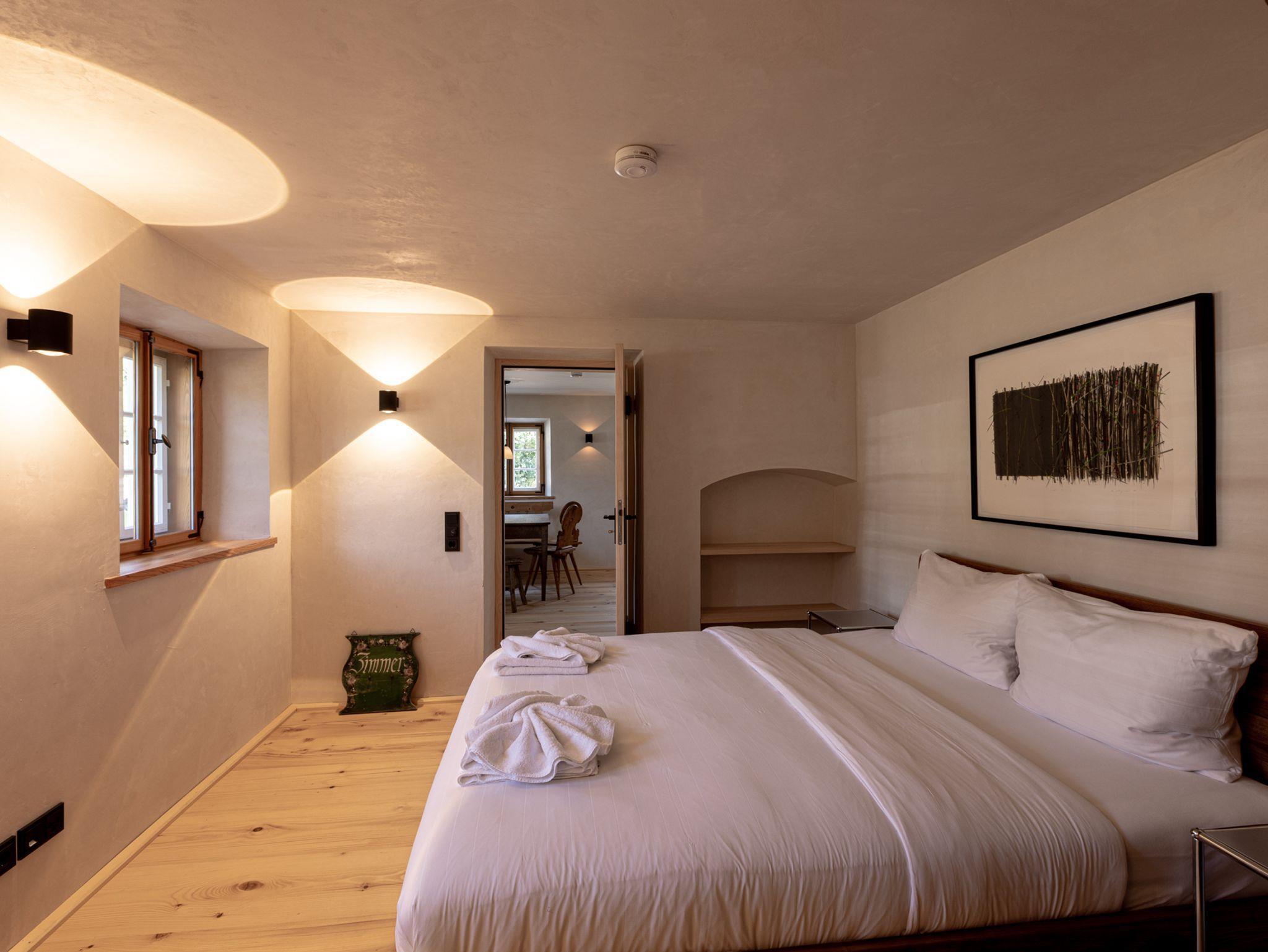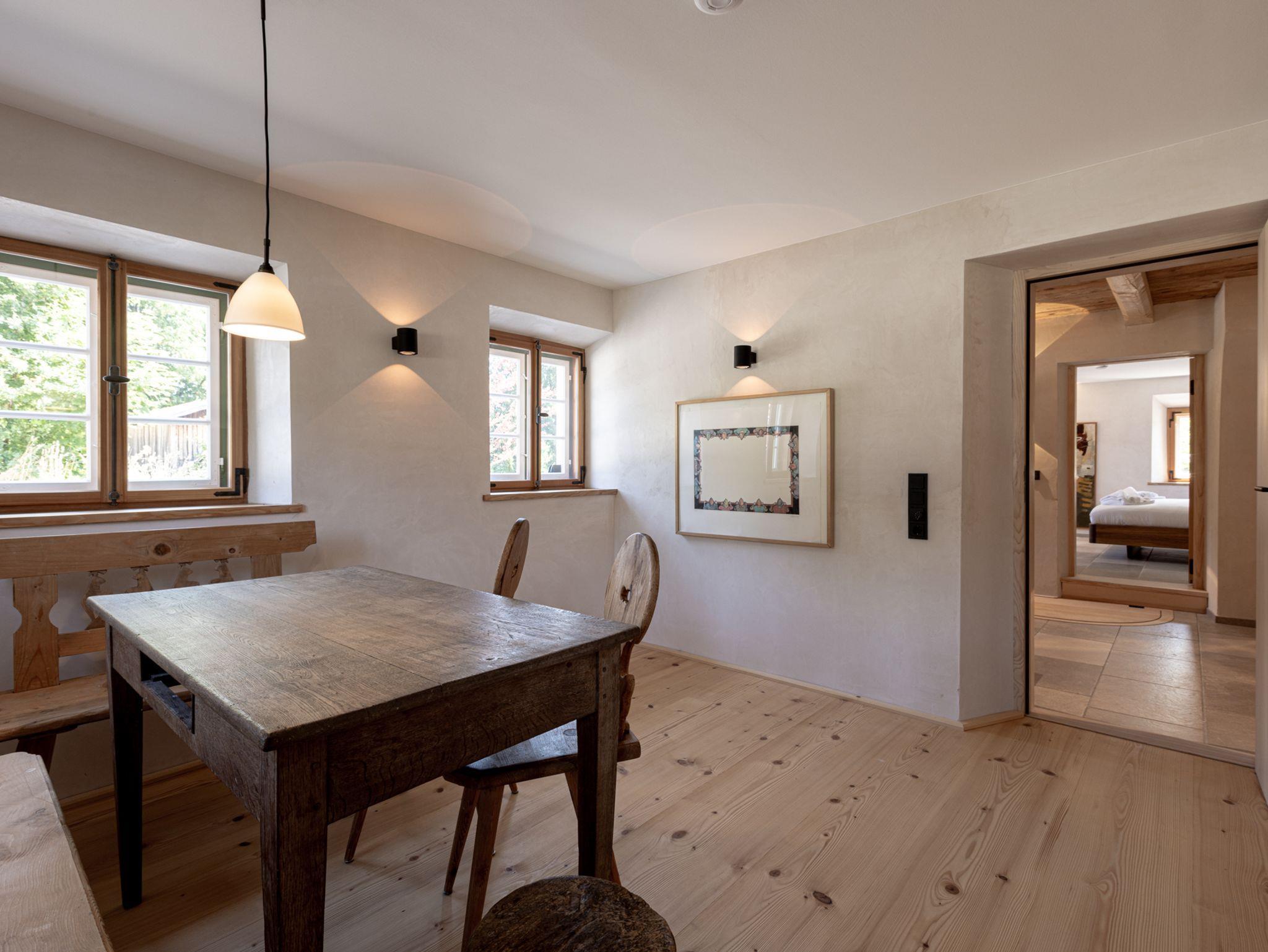 Seit August 2025 können bis zu acht Feriengäste die Geschichte und den Charme des charaktervollen Gebäudes auf über 200qm Wohnfläche erleben. Zudem lädt der geschützt gelegene Garten zum Entspannen ein. Vom Holzsteg am Ende des Grundstücks haben Sie einen freien Blick über Wiesen auf das beeindruckende Bergpanorama von Wildem und Zahmen Kaiser.