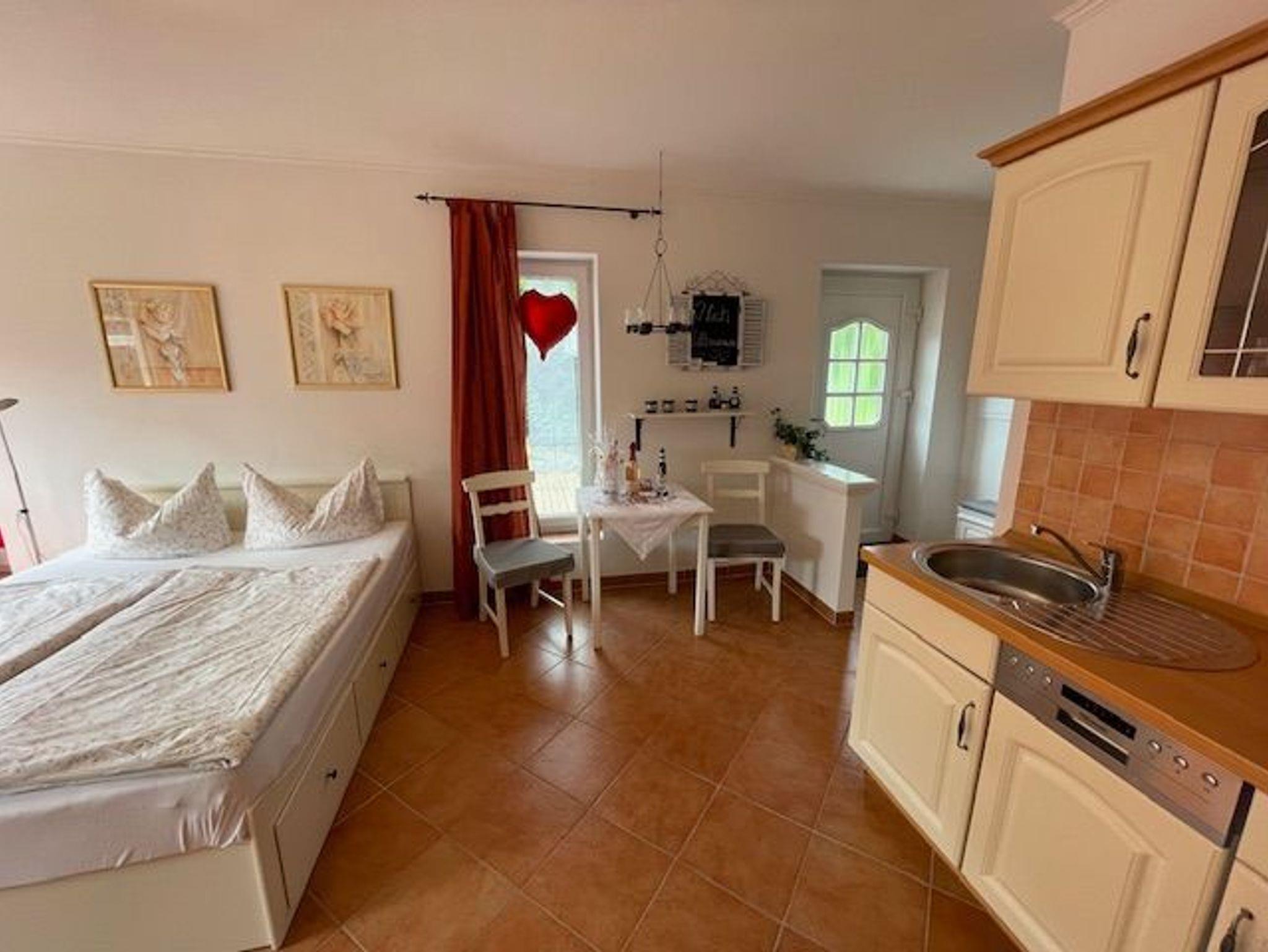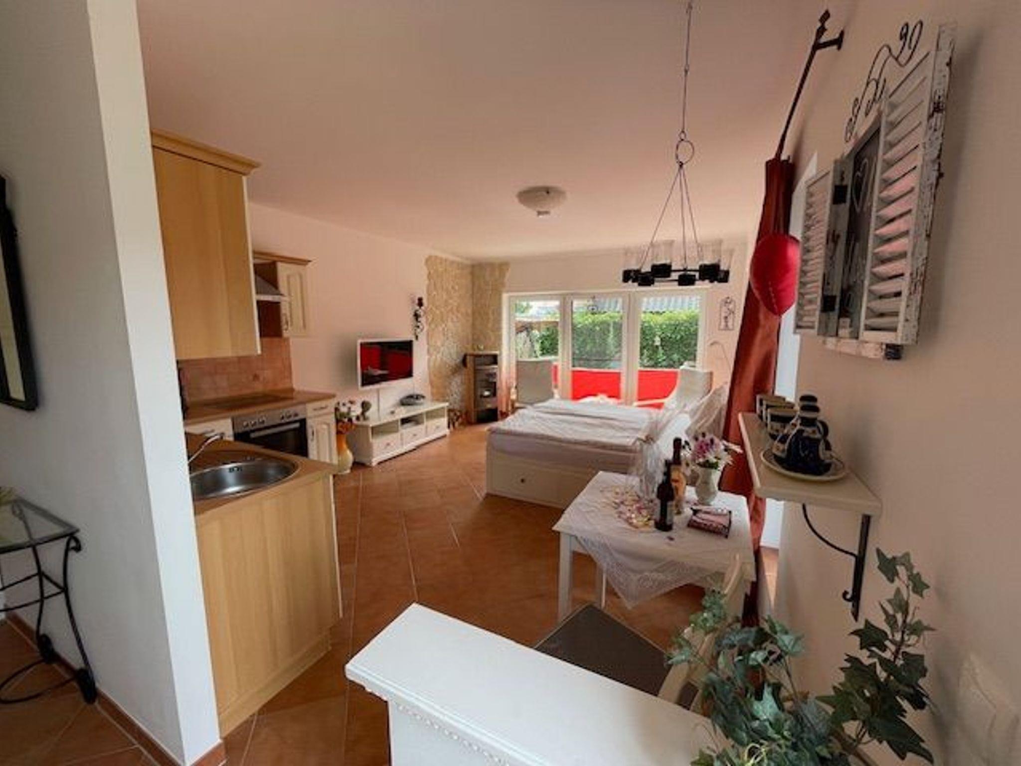 Die Ferienwohnung ist ein Apartment auf unserem Grundstück (Anbau), ist ca. 45 m groß, hell und freundlich, gemütlich mediterran eingerichtet und für 2 Personen geeignet.