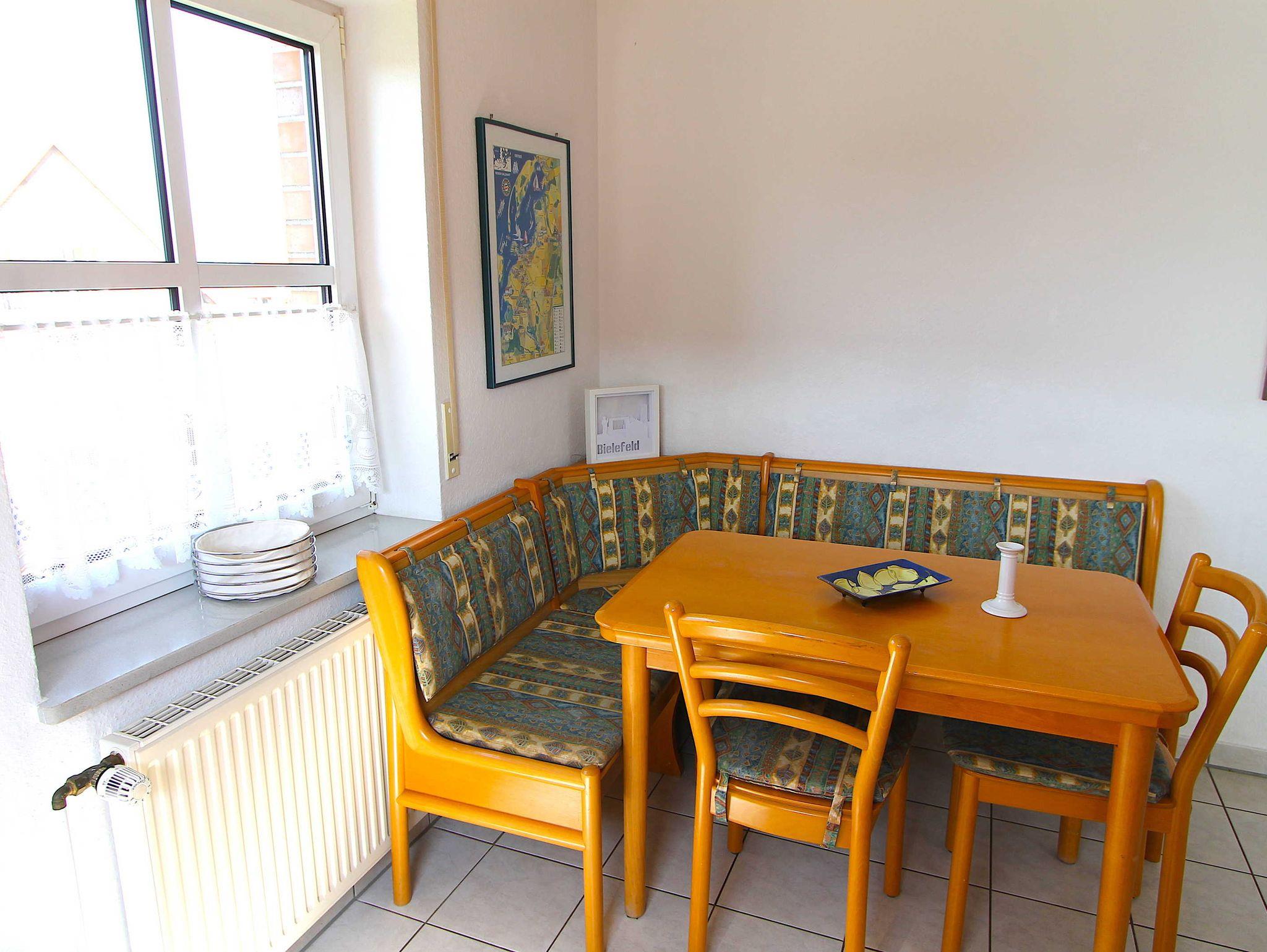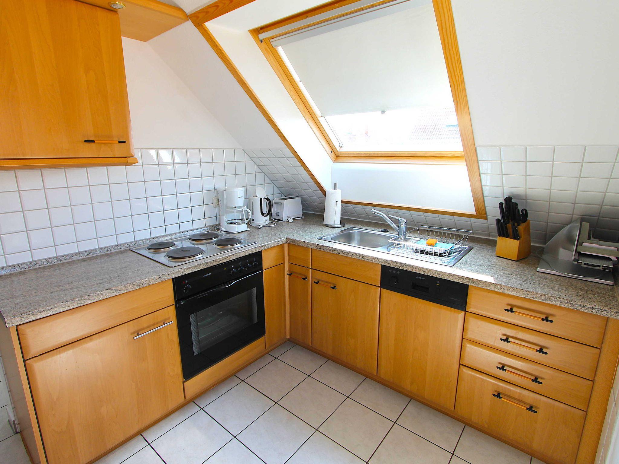 - Küche mit Essecke, Herd- Backofen, Kühlschrank mit Gefrierfach, Geschirrspüler