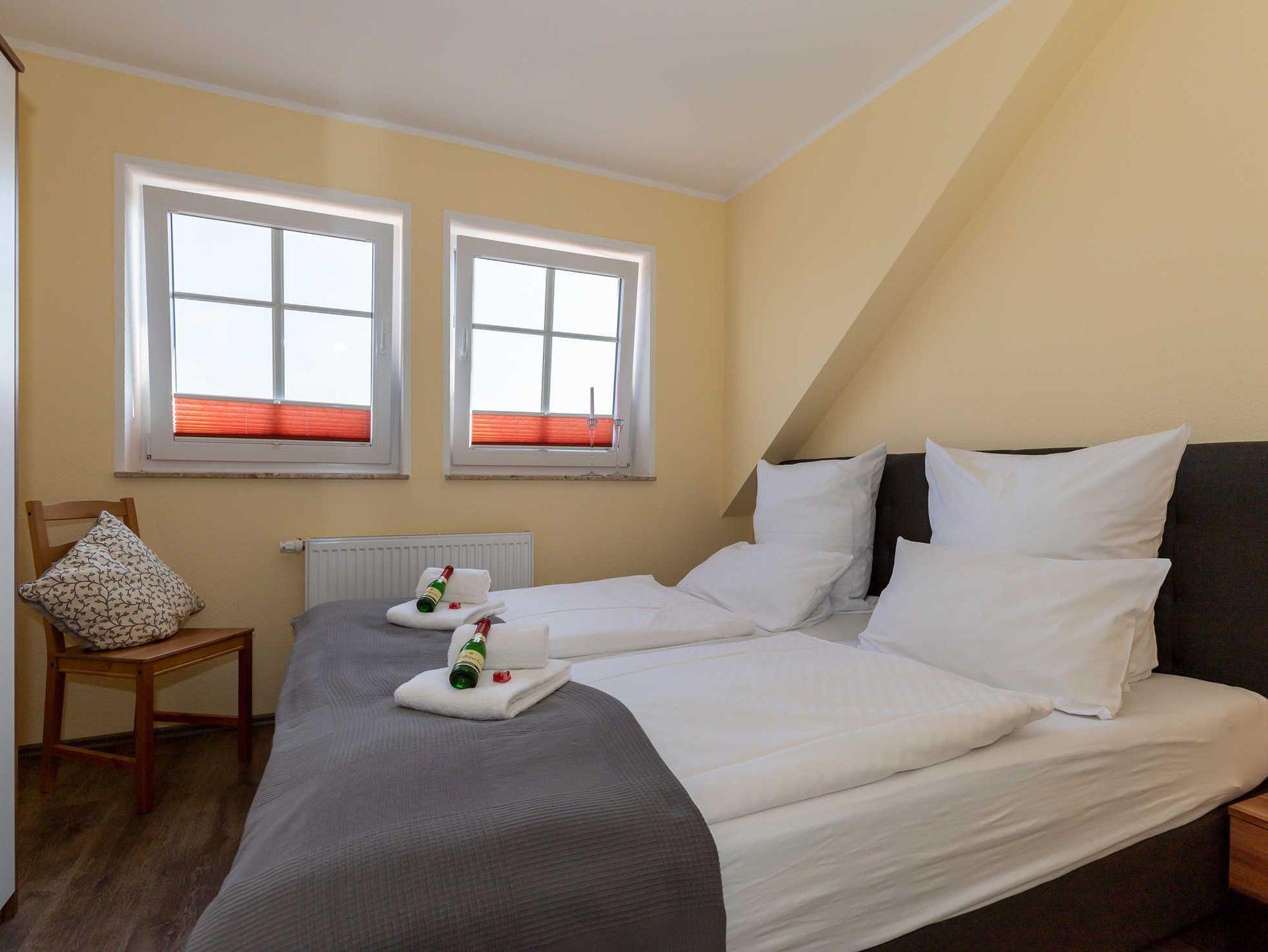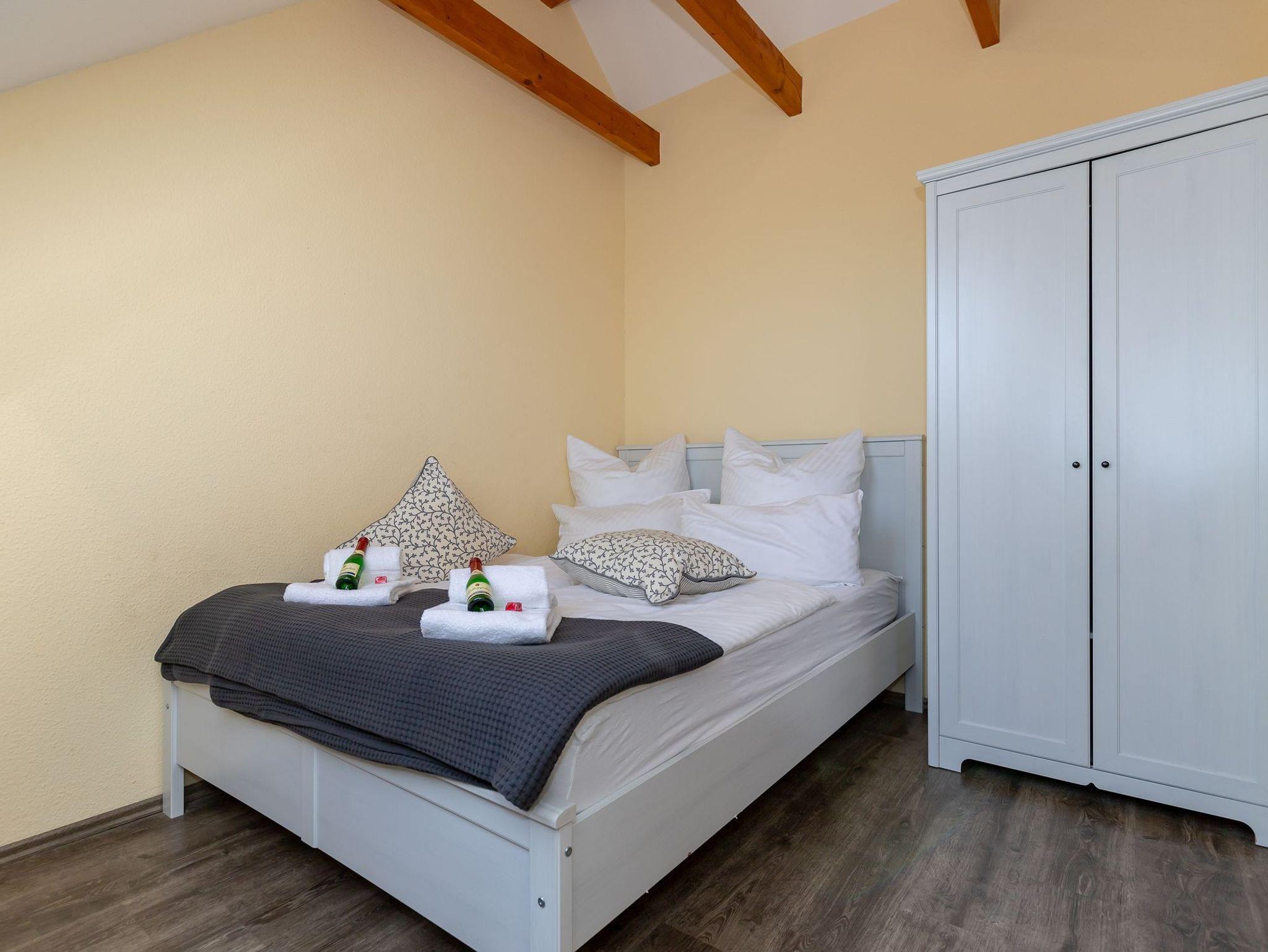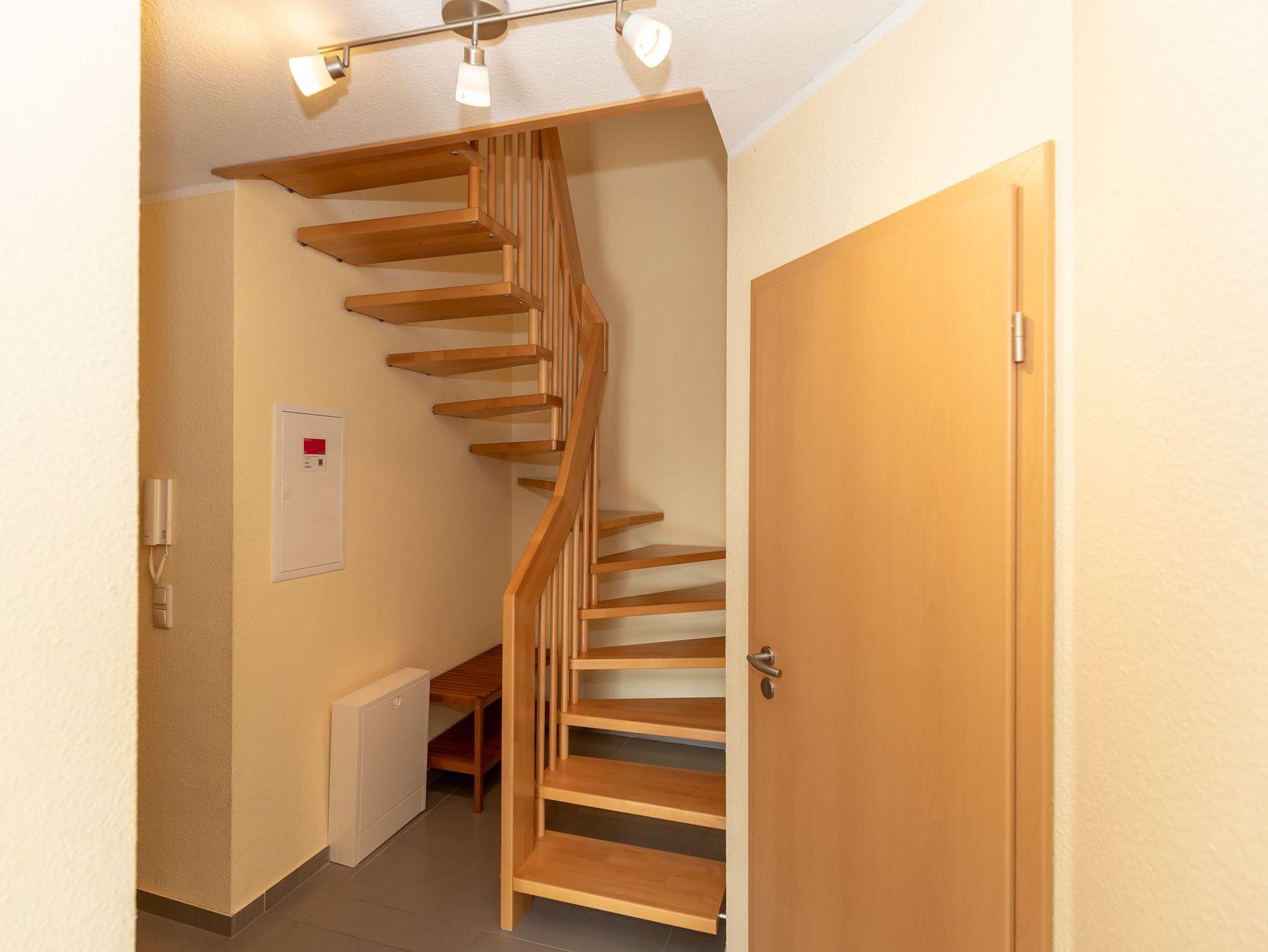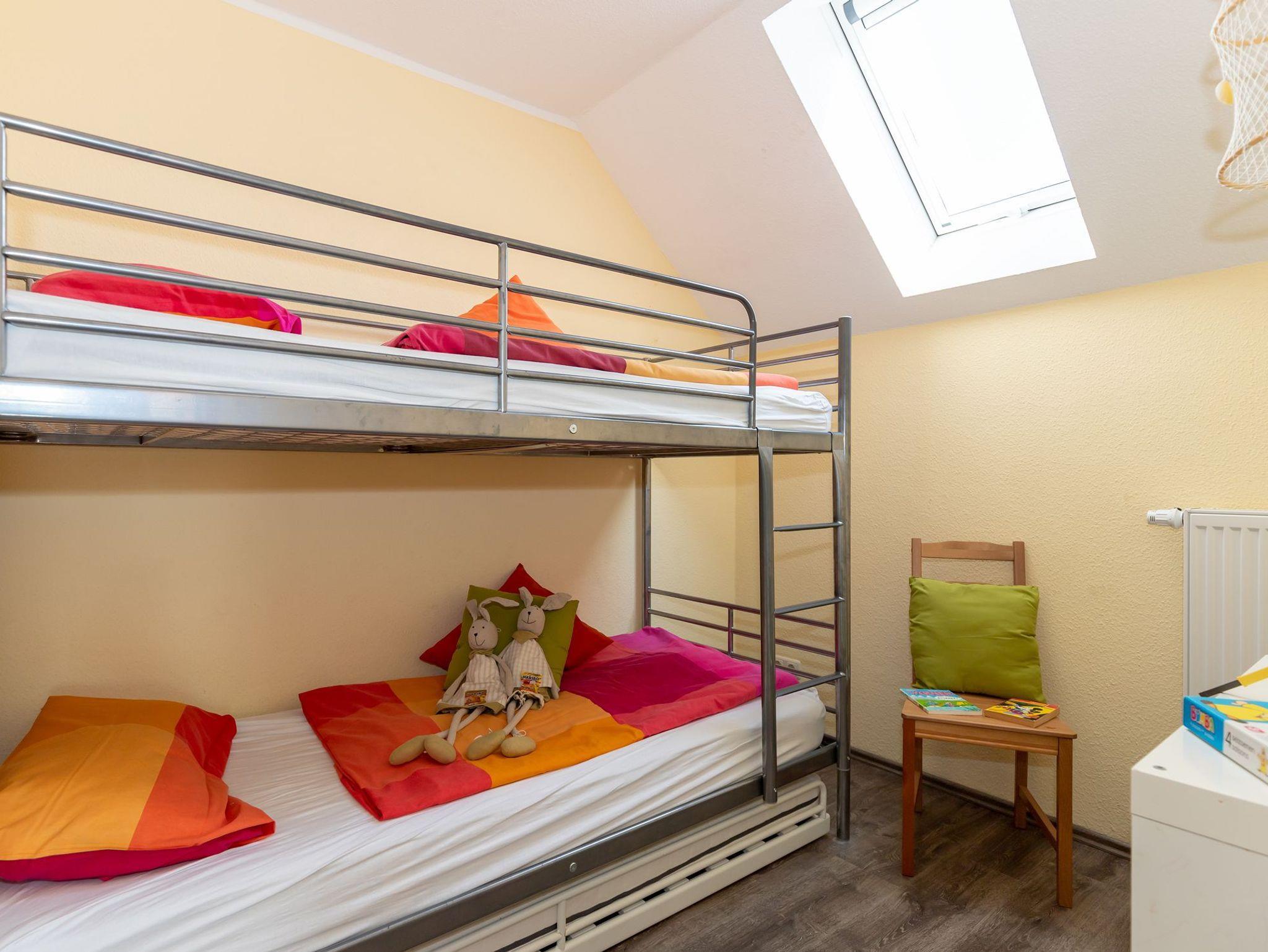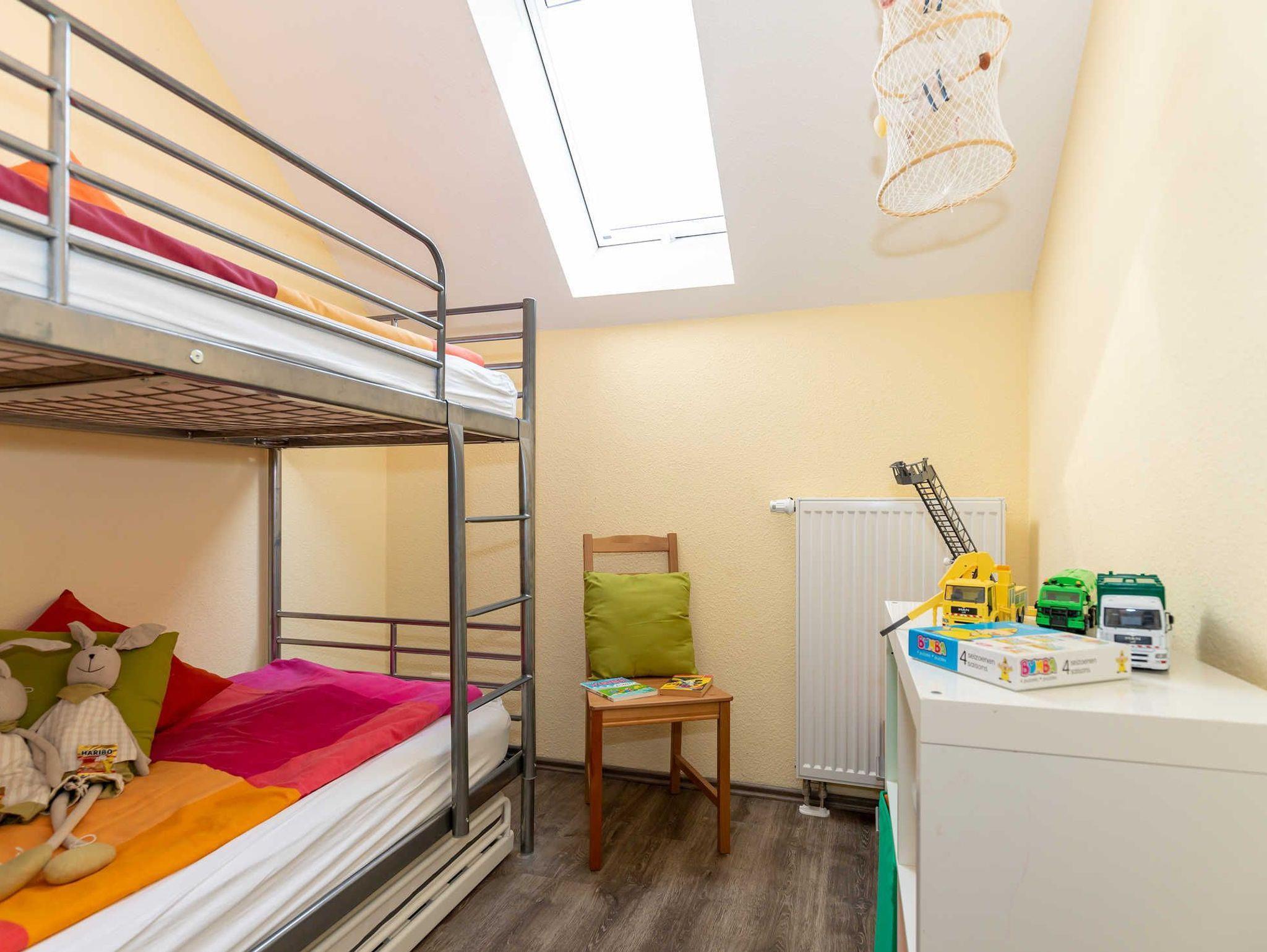Die effizient gestaltete Maisonette-Wohnung verfügt über insgesamt 4 Zimmer. An das Wohnzimmer grenzt eine offene Wohn-Essküche und ein Süd- Balkon mit Sitzgelegenheiten. Desweiteren befinden sich im Erdgeschoss zwei Schlafzimmern, wovon eines mit einem Doppelbett und das andere mit einem Etagenbett ausgestattet ist, sowie ein Duschbad mit Waschtisch, WC und Sprossenheizkörper als Handtuchhalter. Im Obergeschoss befinden sich ein weiteres Schlafzimmer mit Doppelbett, ein Duschbad sowie eine Sauna. Es steht Ihnen ein Auto- Stellplatz und ein abgeschlossener Schuppen zum unterstellen von mitgebrachten Fahrrädern zur Verfügung.