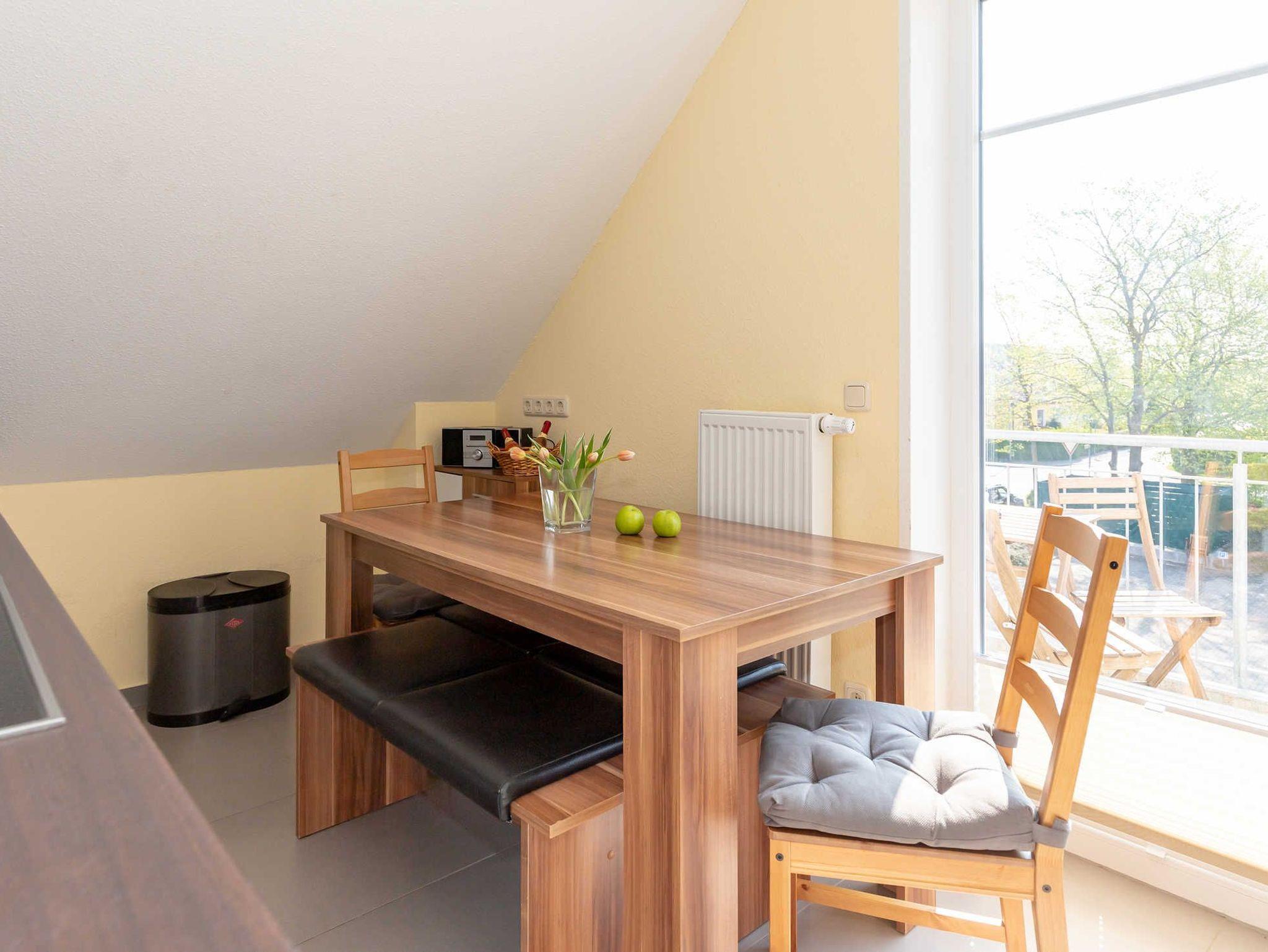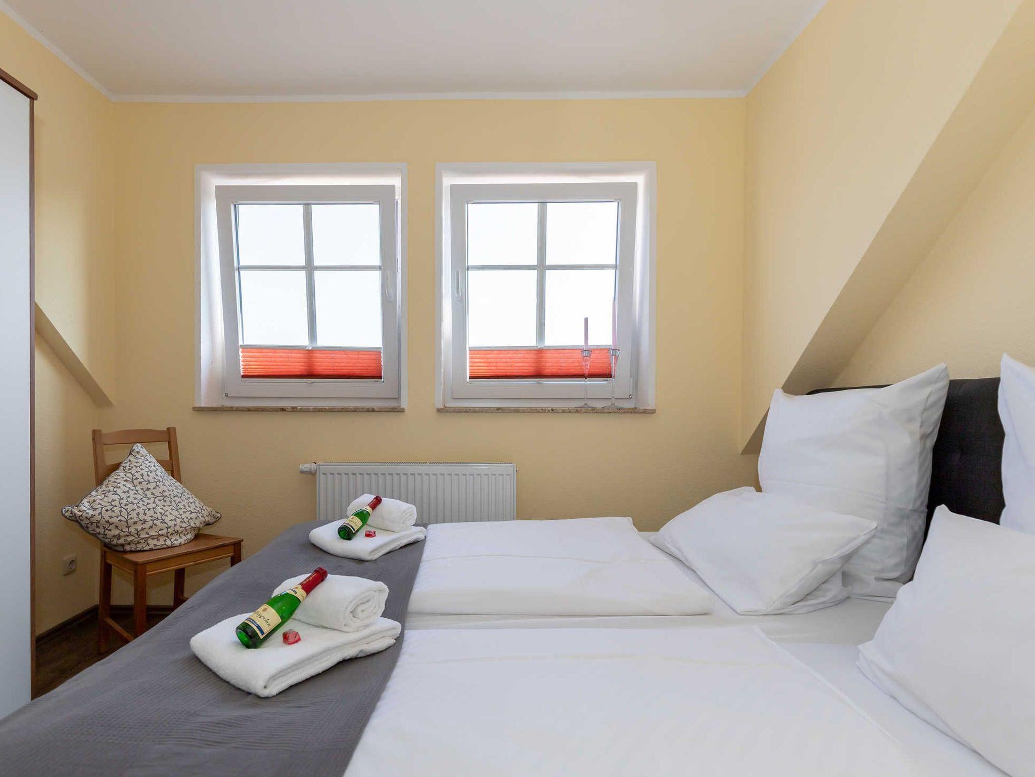 Die effizient gestaltete Maisonette-Wohnung verfügt über insgesamt 4 Zimmer. An das Wohnzimmer grenzt eine offene Wohn-Essküche und ein Süd- Balkon mit Sitzgelegenheiten. Des Weiteren befinden sich im Erdgeschoss zwei Schlafzimmern, wovon eines mit einem Doppelbett und das andere mit einem Etagenbett ausgestattet ist, sowie ein Duschbad mit Waschtisch, WC und Sprossenheizkörper als Handtuchhalter. Im Obergeschoss befinden sich ein weiteres Schlafzimmer mit Doppelbett, ein Duschbad sowie Sauna (gegen Aufpreis) . Ein Auto- Stellplatz und ein abgeschlossener Schuppen steht Ihnen ebenfalls zur Verfügung. Rerik ist ein kleines, sehr beliebtes Ostseebad zwischen Wismar und Rostock, umgeben von Wasser und Natur. Yachthafen, Steilküste, Wander-/Fahrradtouren sind nur einige Highlights des Ortes. Die einmalige Lage zwischen Ostsee und Salzhaff zeichnen das Ostseebad aus. Die Wohnung befindet sich ca. 350 m vom Strand entfernt. Einkaufsmöglichkeiten und Gastronomie sind in unmittelbarer Nähe.