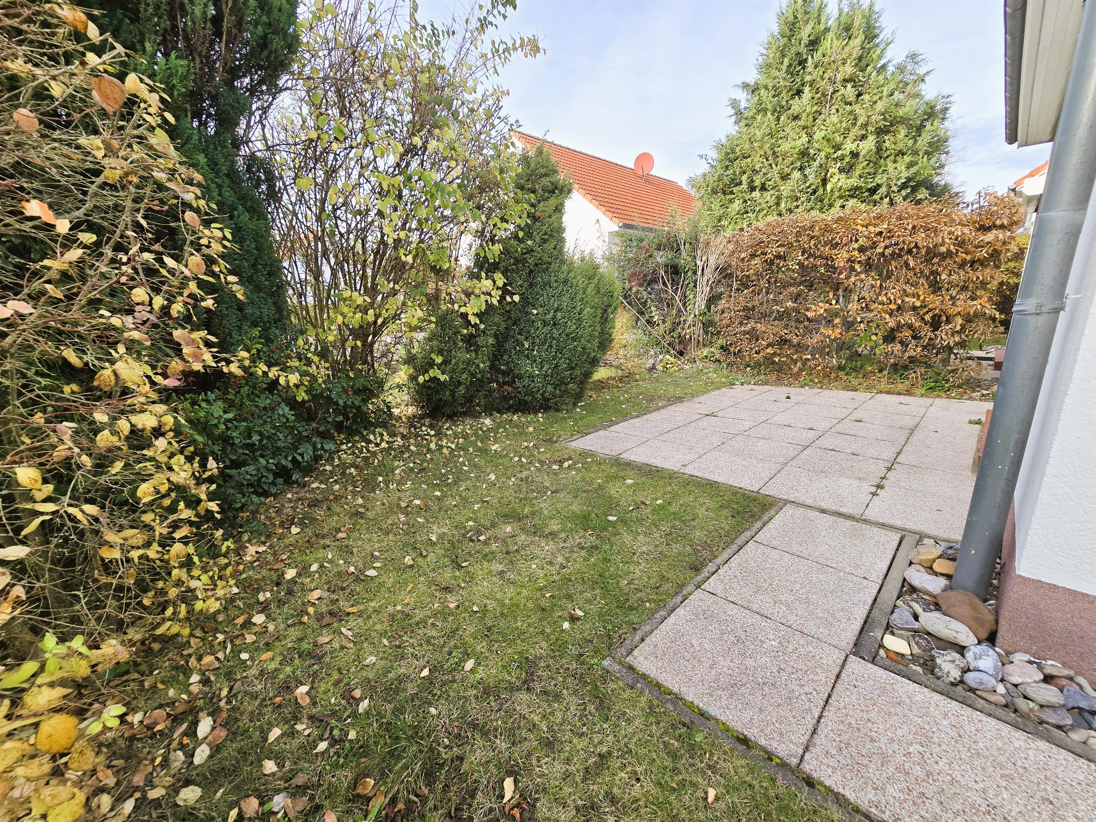 Der mit Naturhecke umsäumte kleine Garten ist ideal für einen gemütlichen Grillabende.