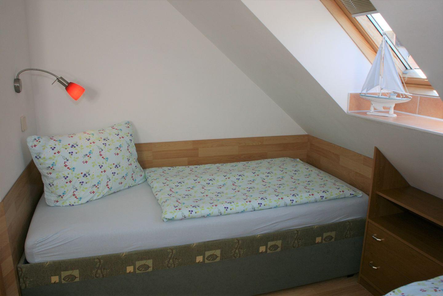 Zwei weitere Schlafzimmer – 1x Doppelbett und 3. Bett sowie 1x 2 Einzelbetten - und ein Gästebad sind im Obergeschoss untergebracht. Es gibt somit ausreichend Kojen für bis zu 7 Personen.