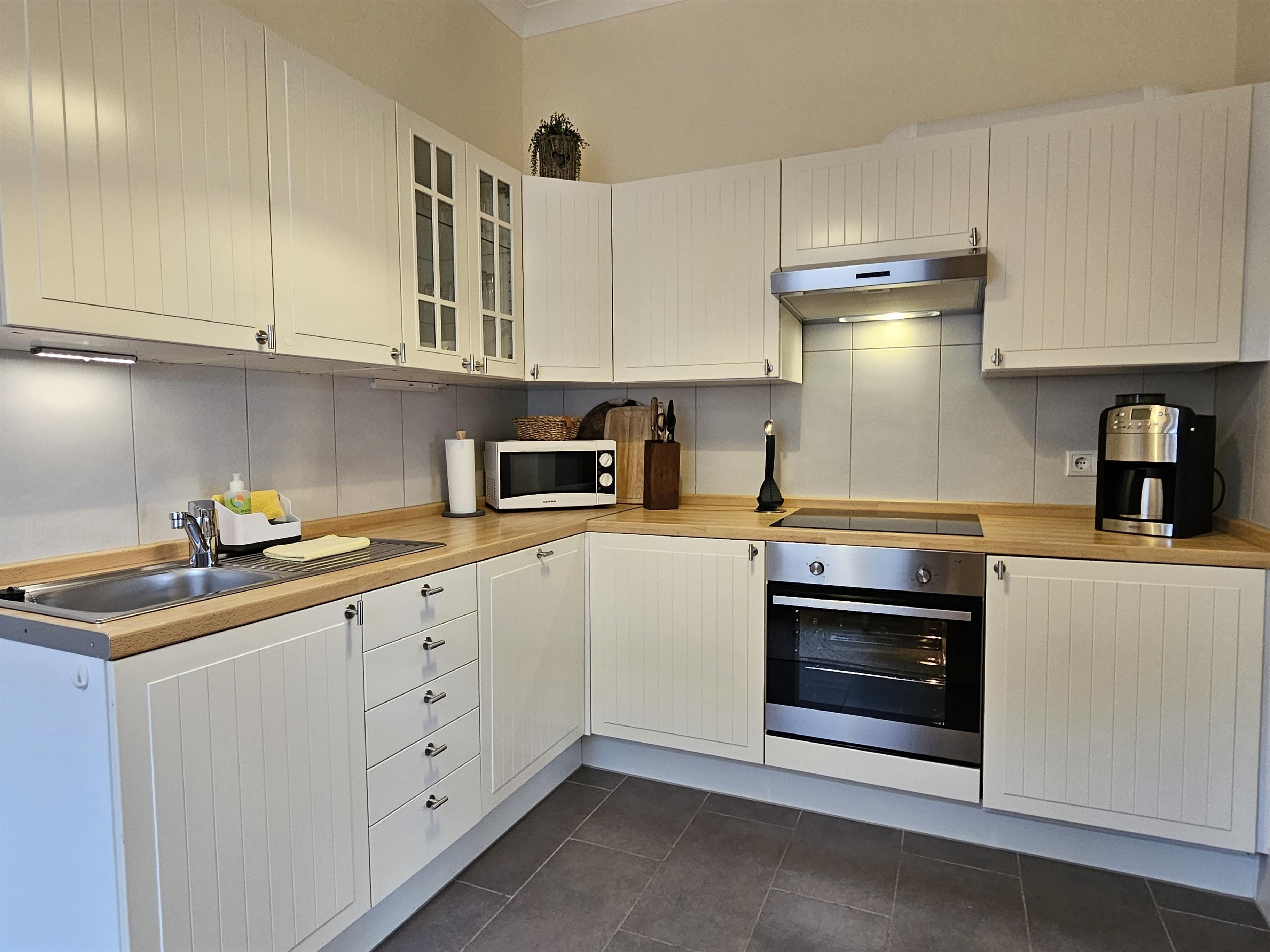 Die Küche verfügt über alle Annehmlichkeiten, die wir für einen entspannten Aufenthalt für wichtig halten. Und falls doch einmal etwas fehlen sollte: Sprechen Sie uns einfach an – wir helfen Ihnen gerne mit Dingen aus unserem eigenen Haushalt aus. Für Ihren Komfort sind alle Fenster mit Außenjalousien und Mückenschutz ausgestattet.