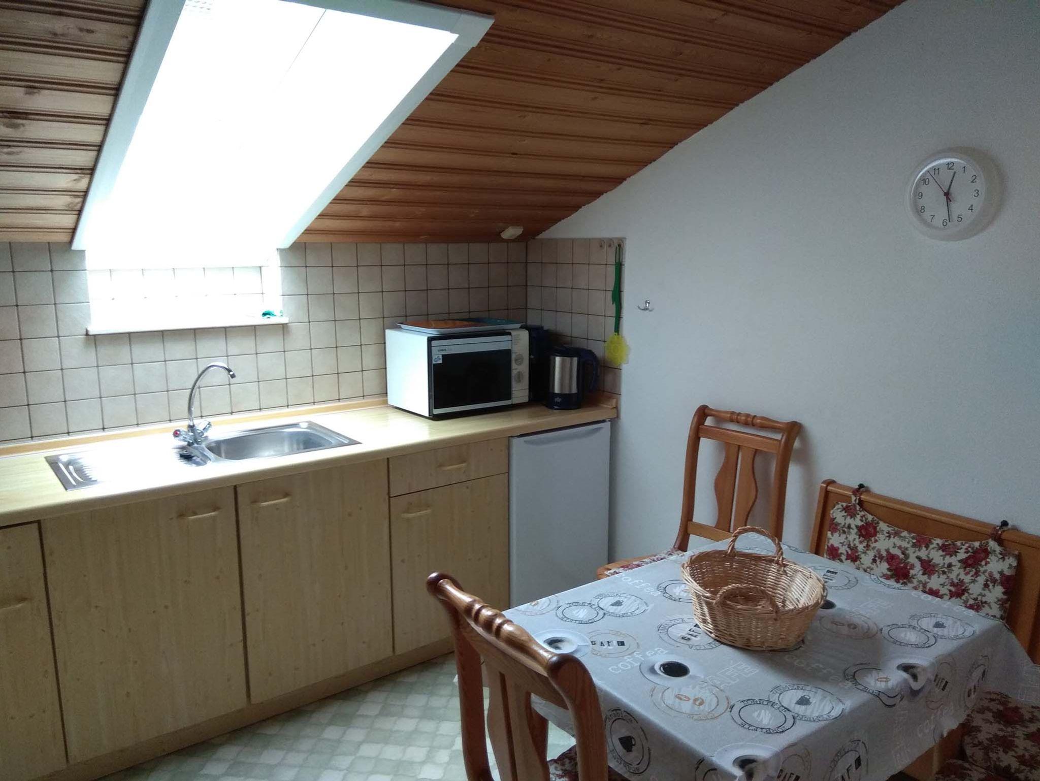 Gemütlich und schön eingerichtete Mansardenwohnung mit zwei separaten Schlafzimmern, einem Bad, extra Küche mit Essecke, eine Balkon, eine Terasse mit Gartenmöbel, eine Liegewiese und eine Grillmöglichkeit. Es stehen Handtücher und Bettwäsche zur Verfügung und eine Waschmaschine kann genutzt werden.