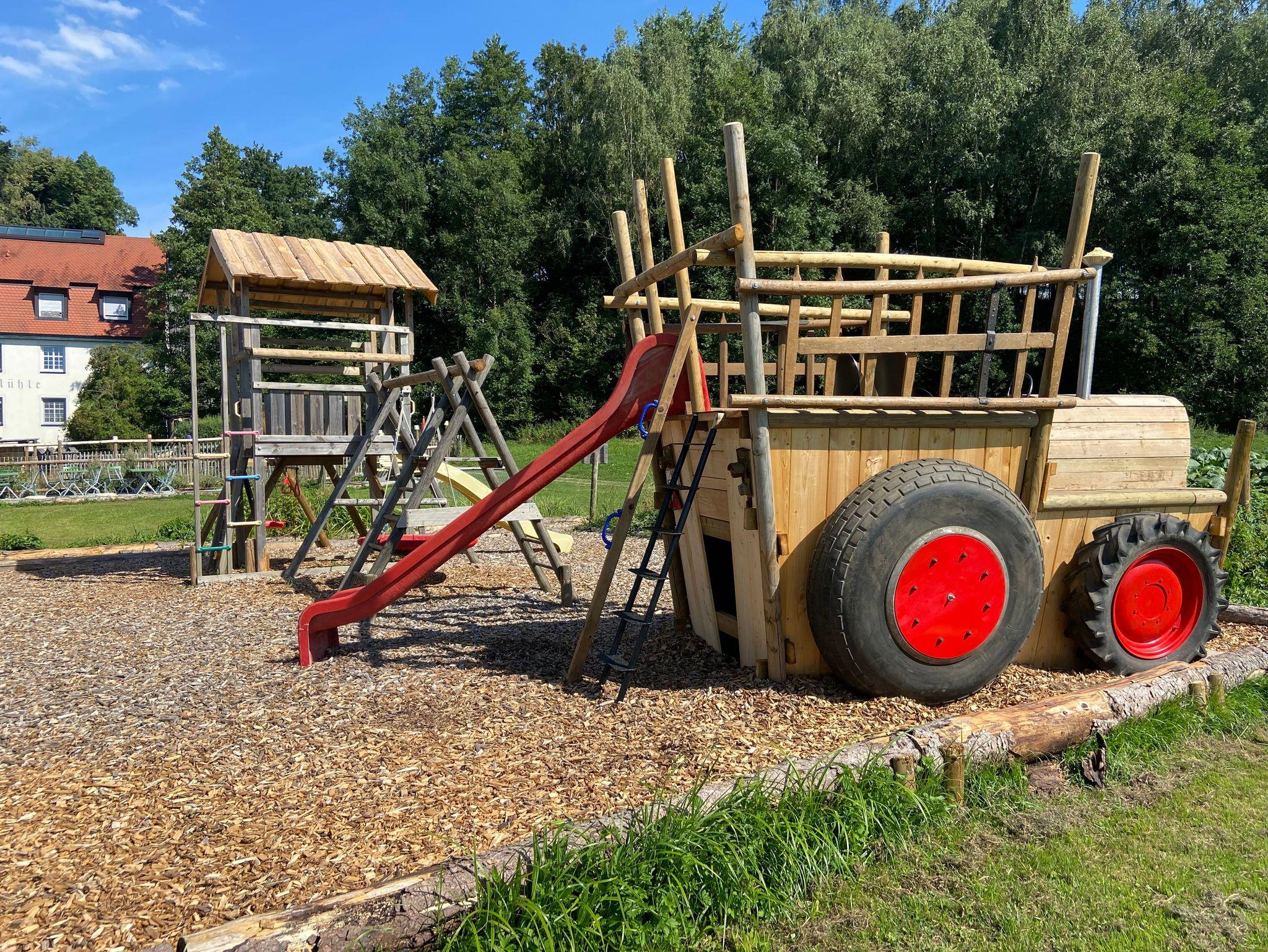 Bei schlechtem Wetter bietet die Spielscheune mit großer Rutsche und vielen Spielmöglichkeiten einen trockenen Platz zum Toben.