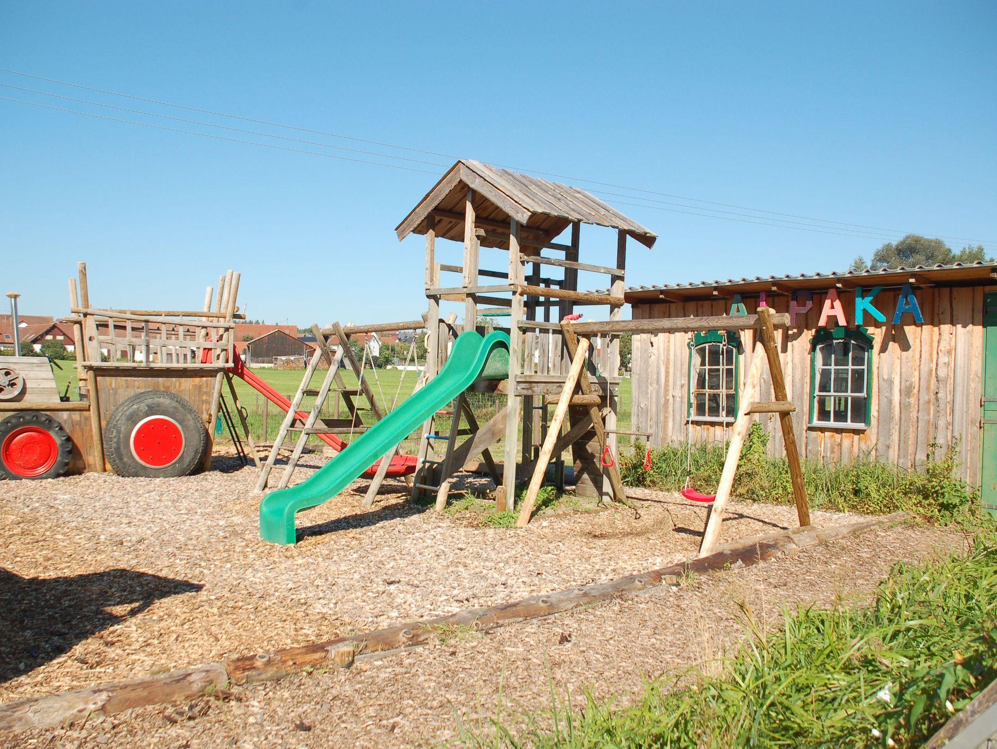 Auf unserem Gelände gibt es viel zu entdecken. Spielplätze zum Springen, Klettern und Schaukeln, die Geisterhöhle, Wasserspielplatz sowie den Bach direkt am Gelände, der an heißen Tagen Abkühlung bietet.