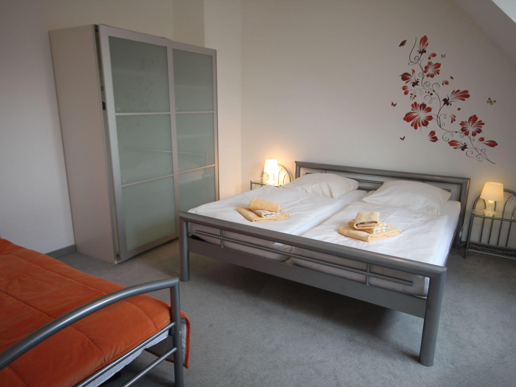 Liebevoll und modern eingerichtet Ferienwohnung für 3 Personen. Für unsere Gäste, die mit dem PKW anreisen gibt es einen Parkplatz direkt hinter dem Haus. Die Ferienwohnung befindet sich in der 4. Etage. Es ist kein Fahrstuhl vorhanden. Auf 48qm stehen Ihnen ein Wohnzimmer, Schlafzimmer mit Doppelbett und zusätzliches Einzelbett sowie eine komfortable Küche zur Verfügung. Zum Strand sind es lediglich 300m.