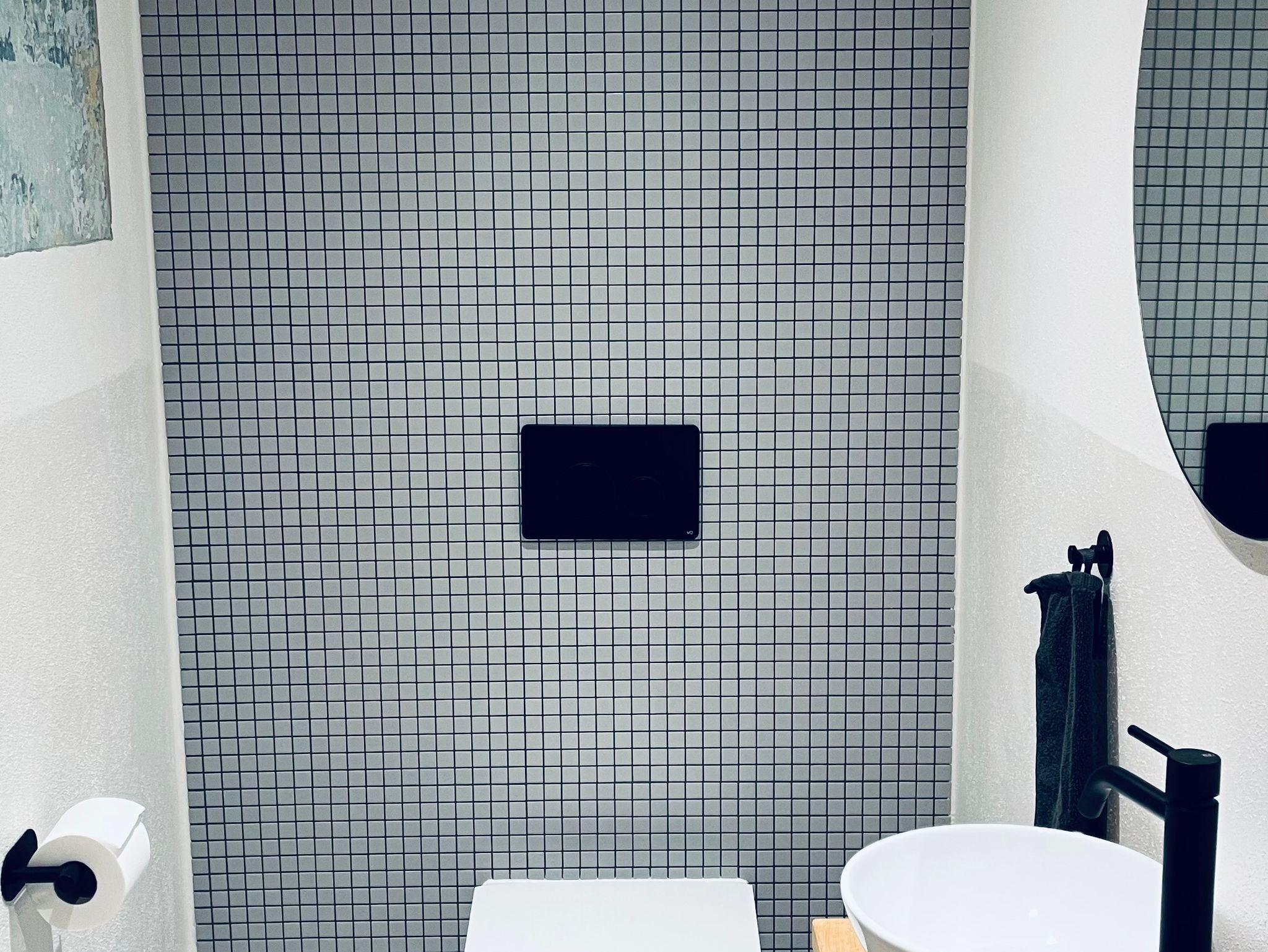Das Premium-Badezimmer begeistert mit einer großen ebenerdigen Dusche und einer komfortablen Badewanne, ergänzt durch ein separates WC.