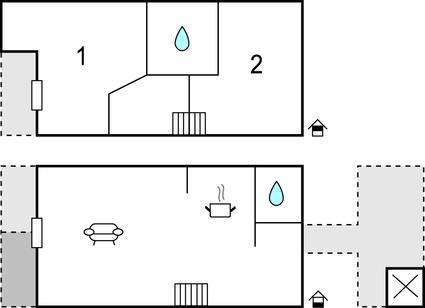 Badezimmer (nr. 1) - WC. Warmes und kaltes Wasser. Dusche