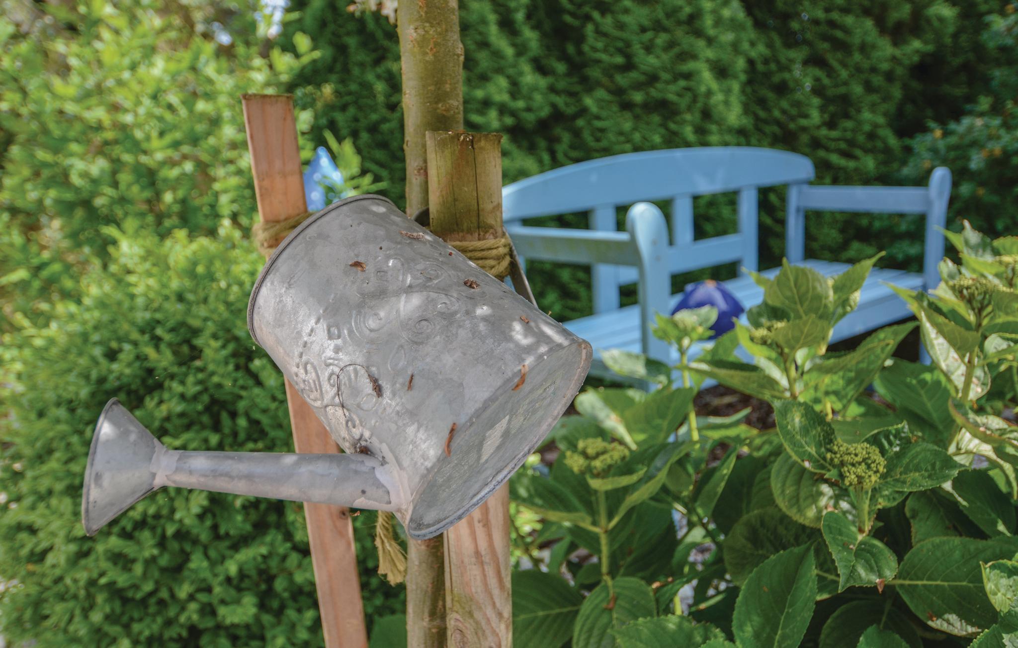 Der liebevoll angelegte kleine Garten lockt mit hochwertigen Gartenmöbeln zum Frühstück im Freien oder zum Sonnenbad. Vor dem Haus befindet sich noch eine weitere Terrasse, und auch auf dem Balkon können Sie herrlich entspannen.