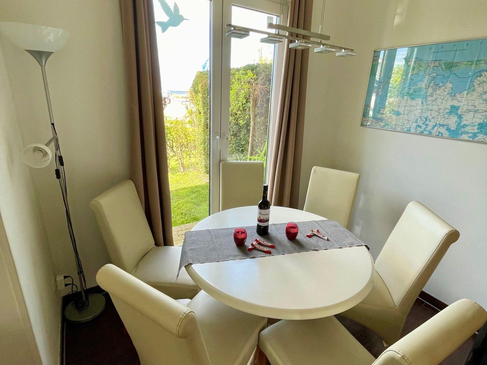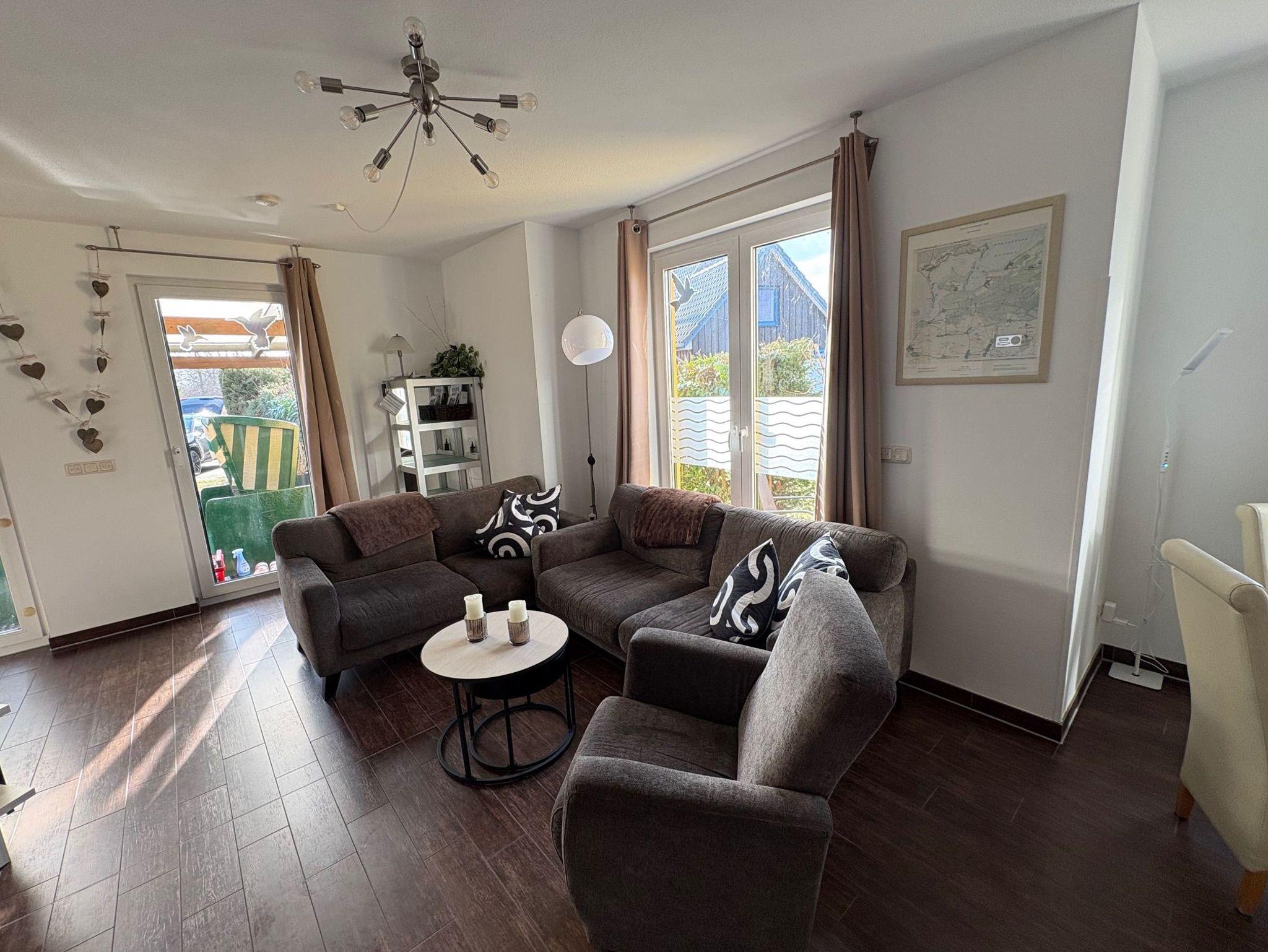 ine hochwertig ( **** DTV ) ausgestattete Doppelhaushälfte ( Baujahr 2010 ) - 85qm - für 6 (2) Personen mit 3 Schlafzimmern, 2 Bädern, Sauna und Kamin. Das Haus hat Wasserblick und verfügt über 2 Terrassen. Es stehen 3 separate Schlafzimmer zur Verfügung, wovon 2 SZ mit Doppelbetten und 1 SZ mit einem Doppelbett im Alkoven (Schlafboden) ausgestattet ist. Die beiden Bäder sind mit Toilette und Waschbecken sowie 1x mit Dusche und 1x mit Wanne ausgestattet. Von einem Bad hat man außerdem den Zugang zur Sauna. Das Haus ist ideal für Angler, Surfer, Segler, Kiter, Radfahrer und Naturfreunde. Weiterhin können Fahrräder kostenlos genutzt werden und ein Ruderboot kostenpflichtig gemietet werden. Der Naturstrand befindet sich in 50m Entfernung. WLAN ist vorhanden.Die Gemeinde erhebt eine Kurabgabe pro Person/ Nacht.