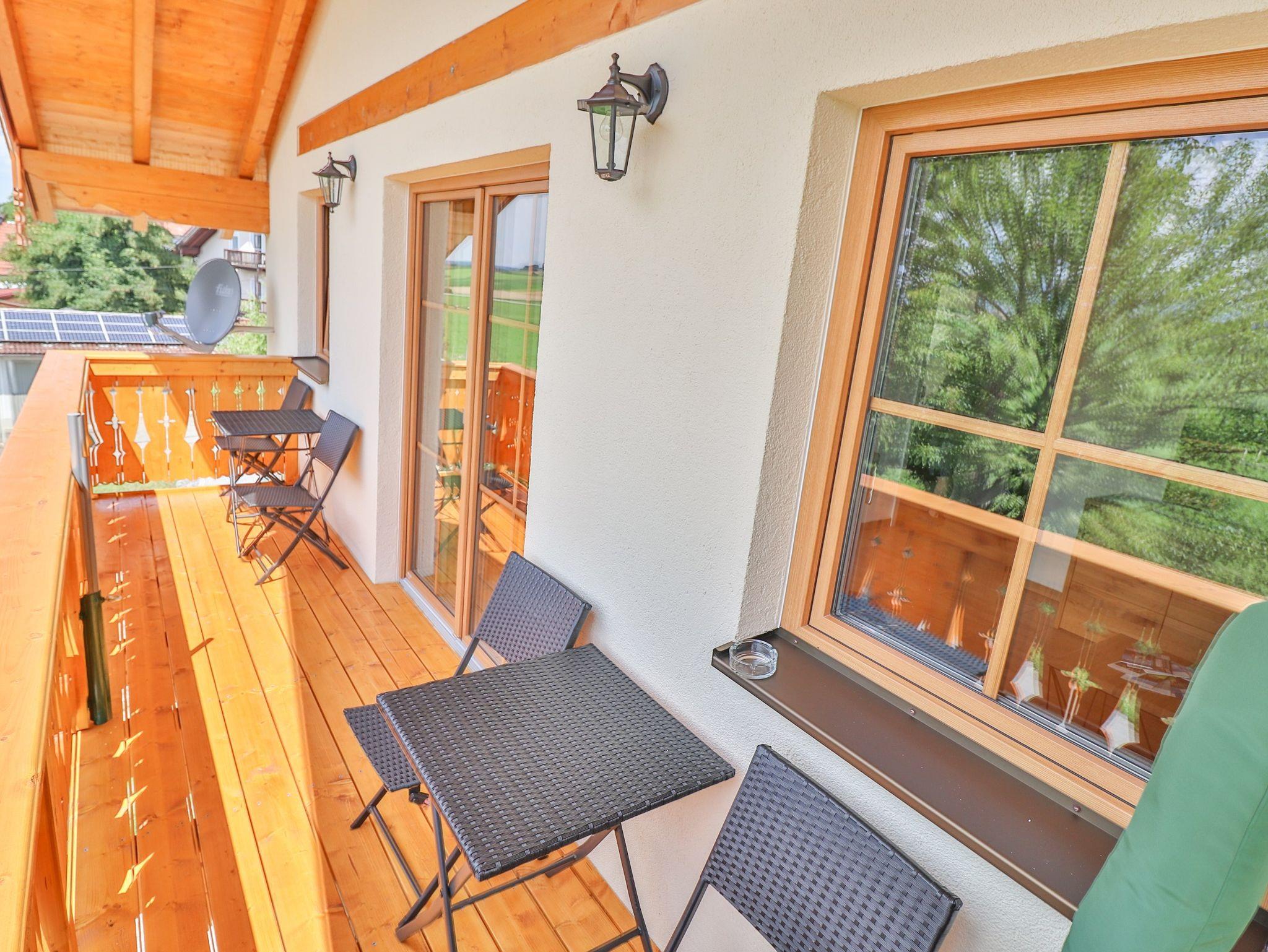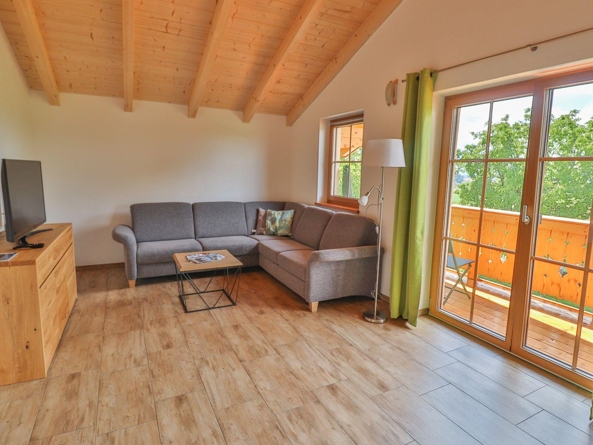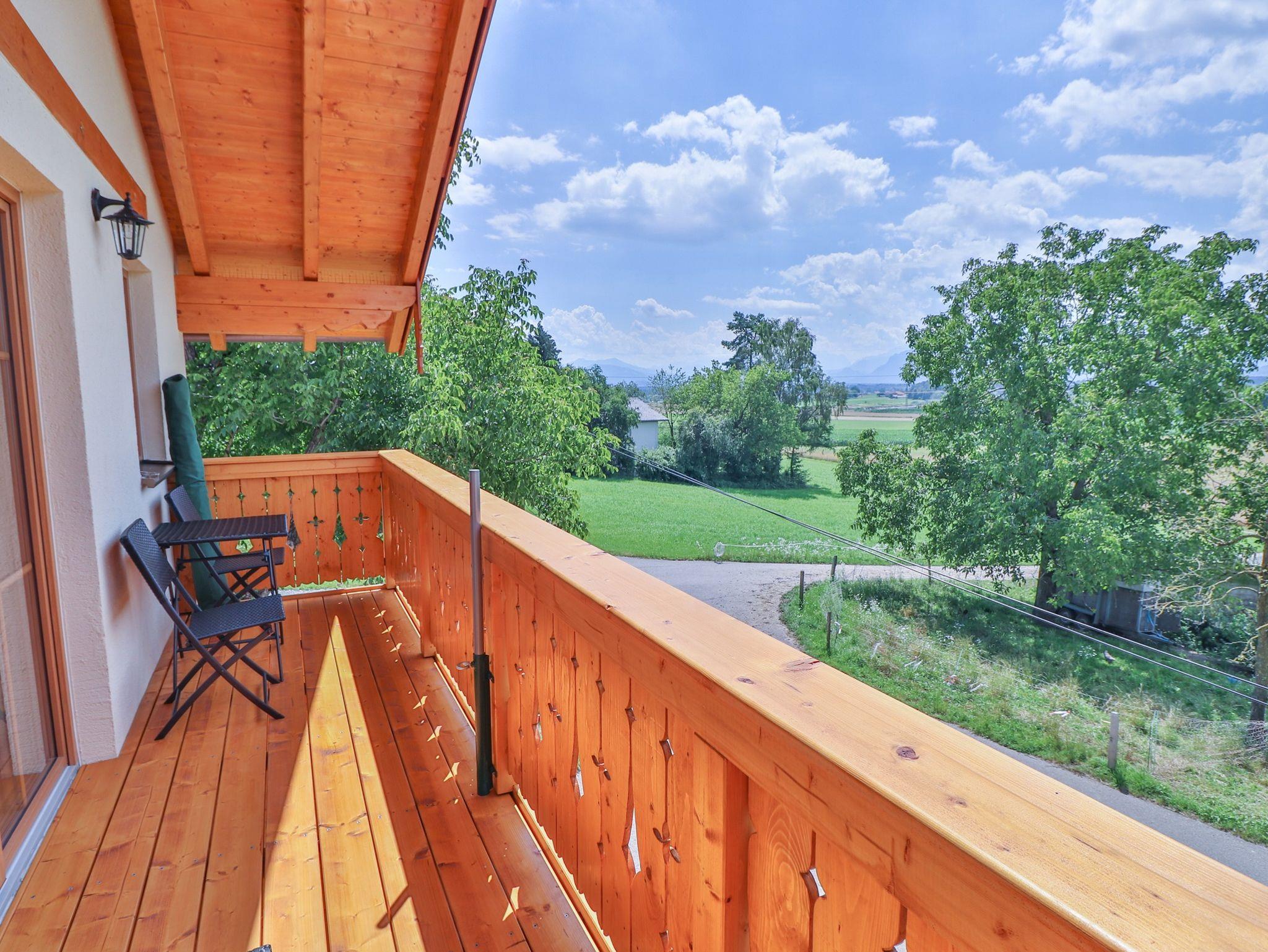 Unsere Ferienwohnung bietet Platz für bis zu fünf Personen. Mit Blick auf die Berchtesgadener und Salzburger Alpen könnt ihr jeden Morgen einen schönen, erholsamen Tag am Land, in der Natur erleben. Auf 53 m² gibt es zwei getrennte Schlafzimmer, eines mit Doppelbett und eines mit Stockbett. Ein Badezimmer mit Dusche, WC und eine Wohnküche mit Ausziehsofa bieten Wohnkomfort in der Ferienwohnung. Ein wunderschönes Panorama erwartet euch vom Balkon aus. Kinderbett oder Hochstuhl stellen wir natürlich auf Anfrage für euch bereit. Zudem könnt ihr den Garten inklusive der Sitzgelegenheiten und dem Grill zu nutzen.