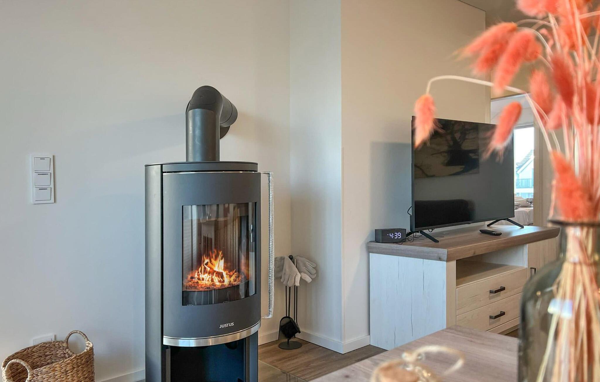 Auch an Schietwetter-Tagen wird es durch Fußbodenheizung, InfrarotSauna (Wärmekabine) und Kaminofen so richtig kuschelig.