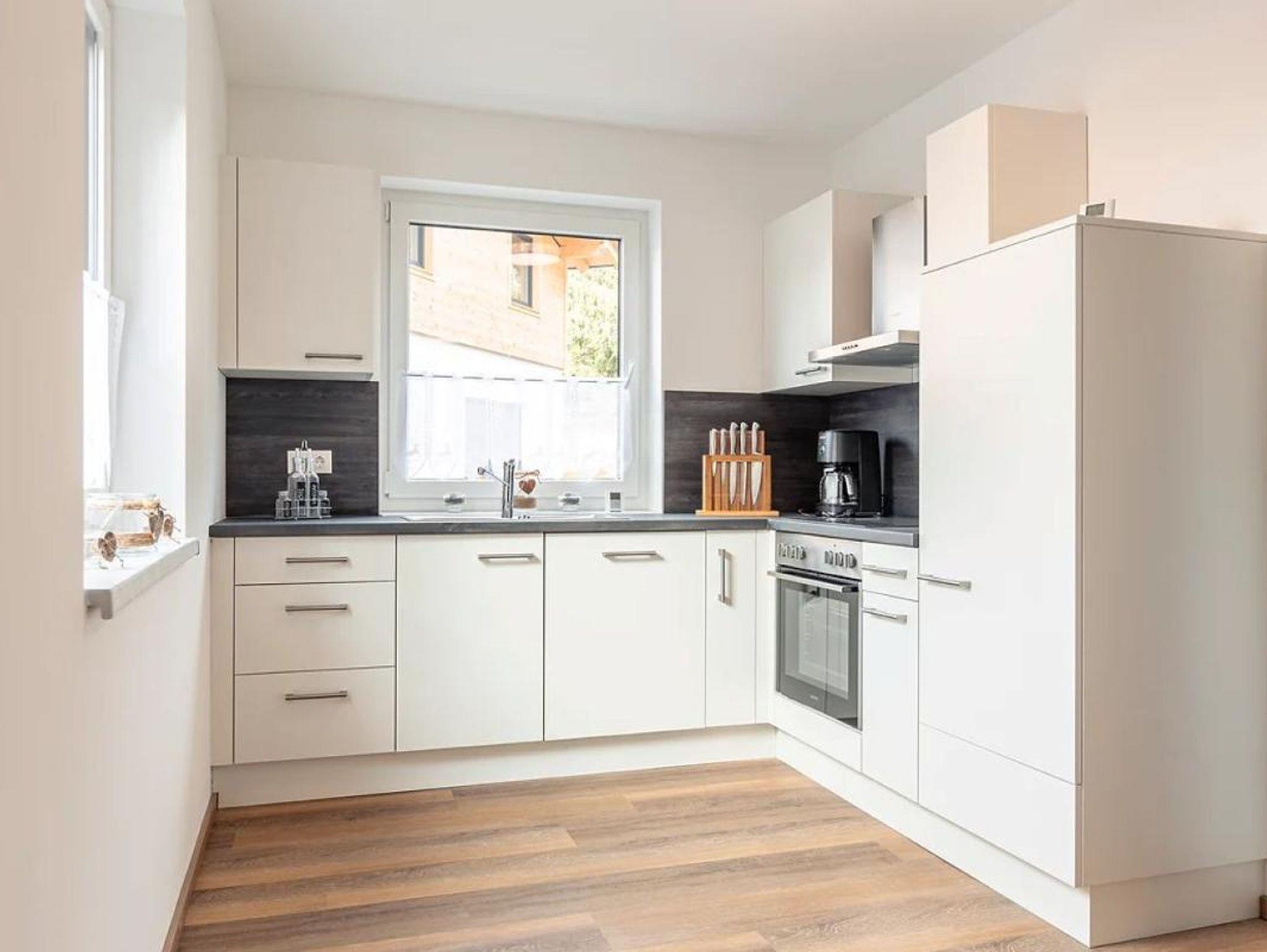 Voll ausgestattete Küche mit Geschirrspüler, Ceranfeld, Kühlschrank, Kaffeemaschine & Wasserkocher