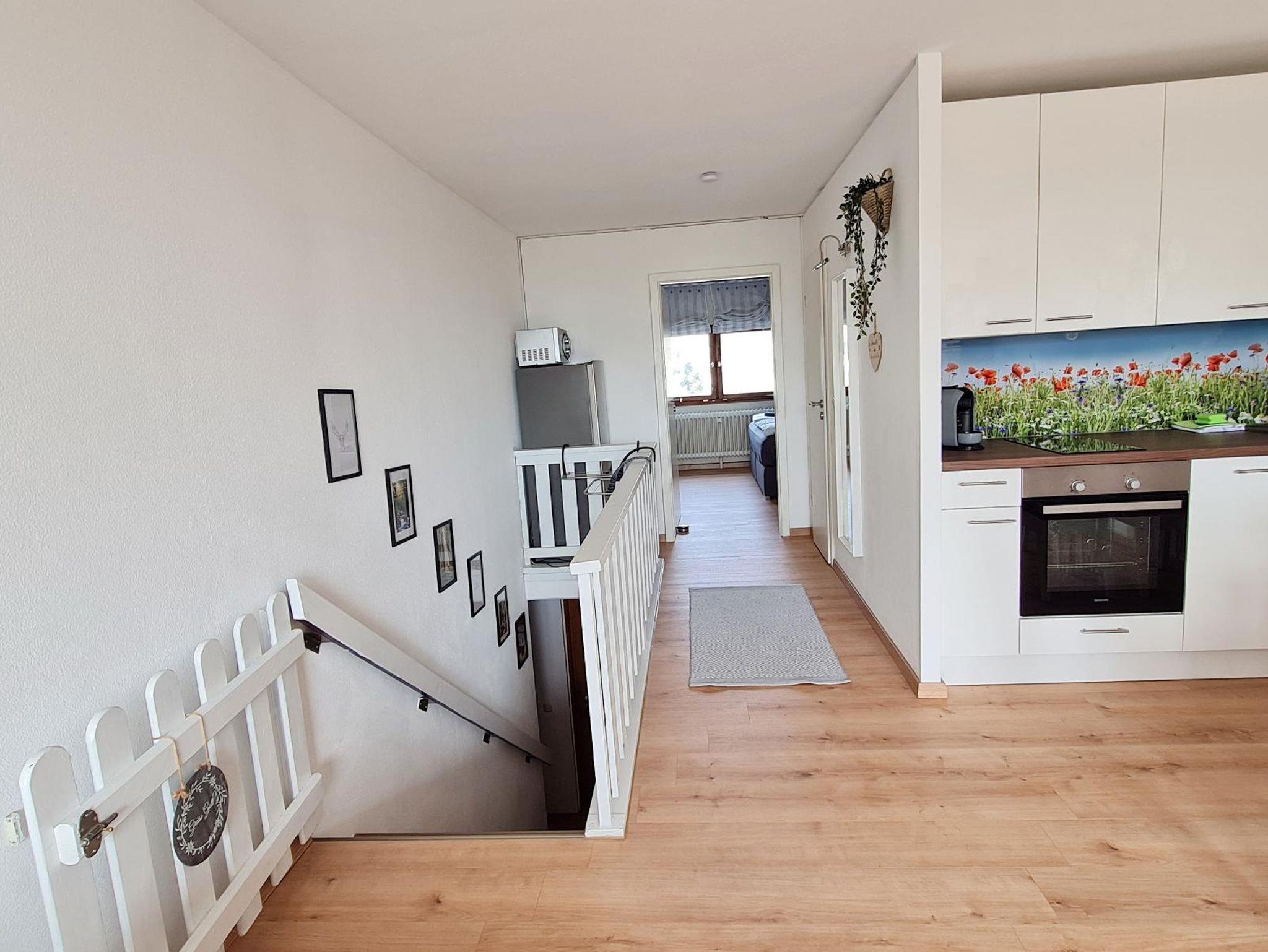 mit Balkon: Über eine Treppe gelangen Sie in den hellen,