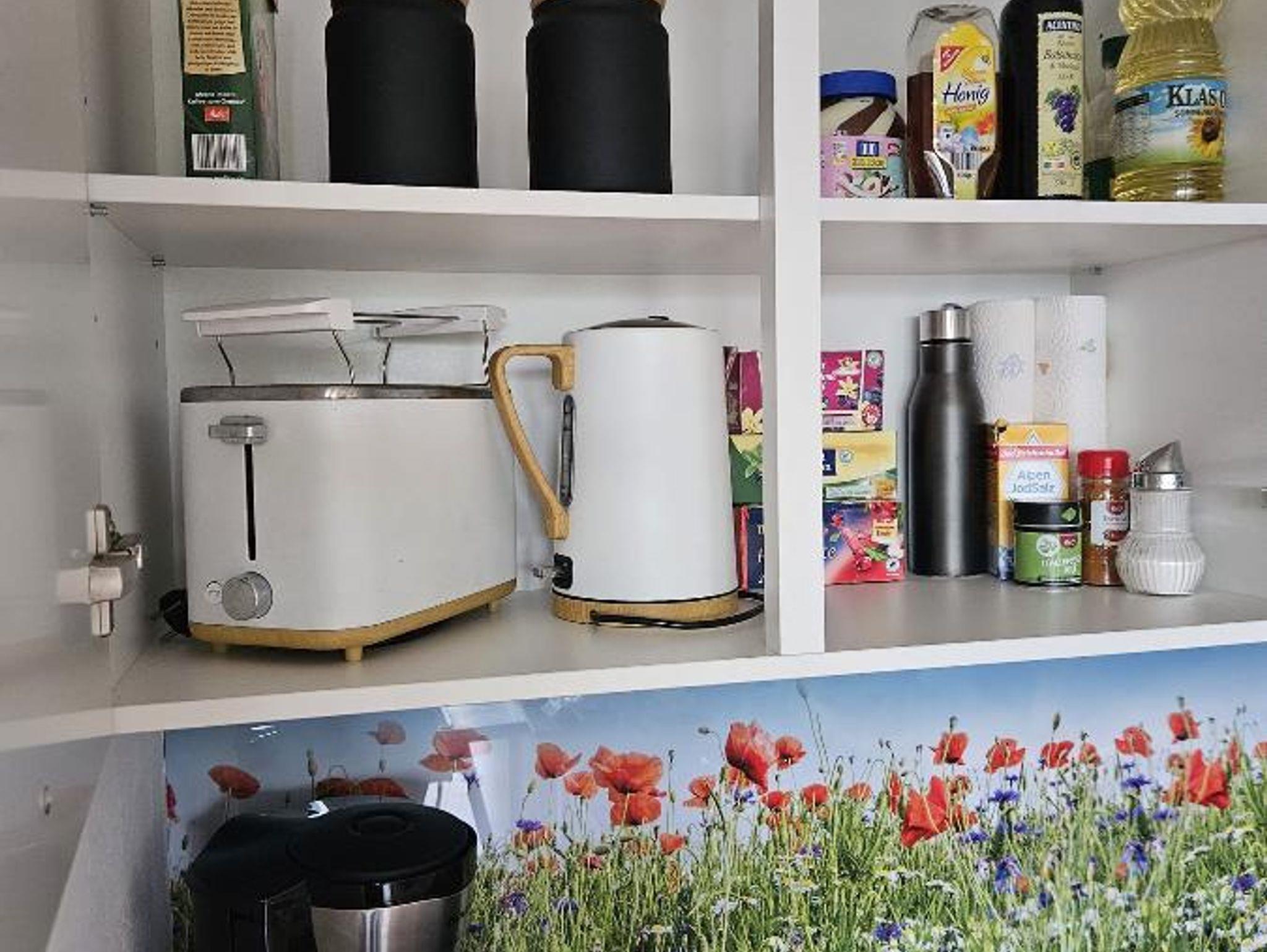 Kaffeemaschine, Wasserkocher, Mikrowelle, Toaster sowie ein großer