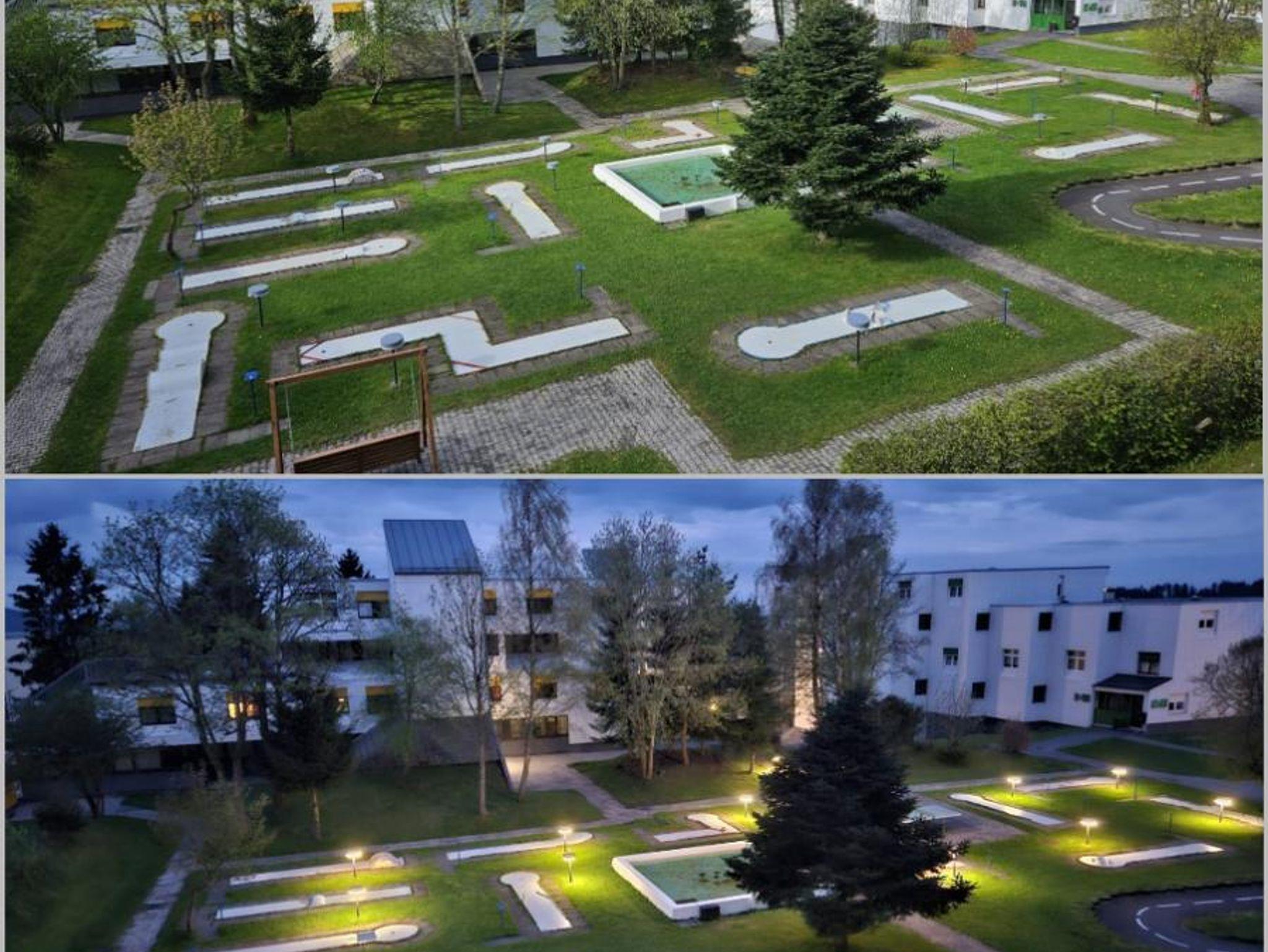 beleuchteten Minigolfplatz und lädt zum Frühstücken, Entspannen