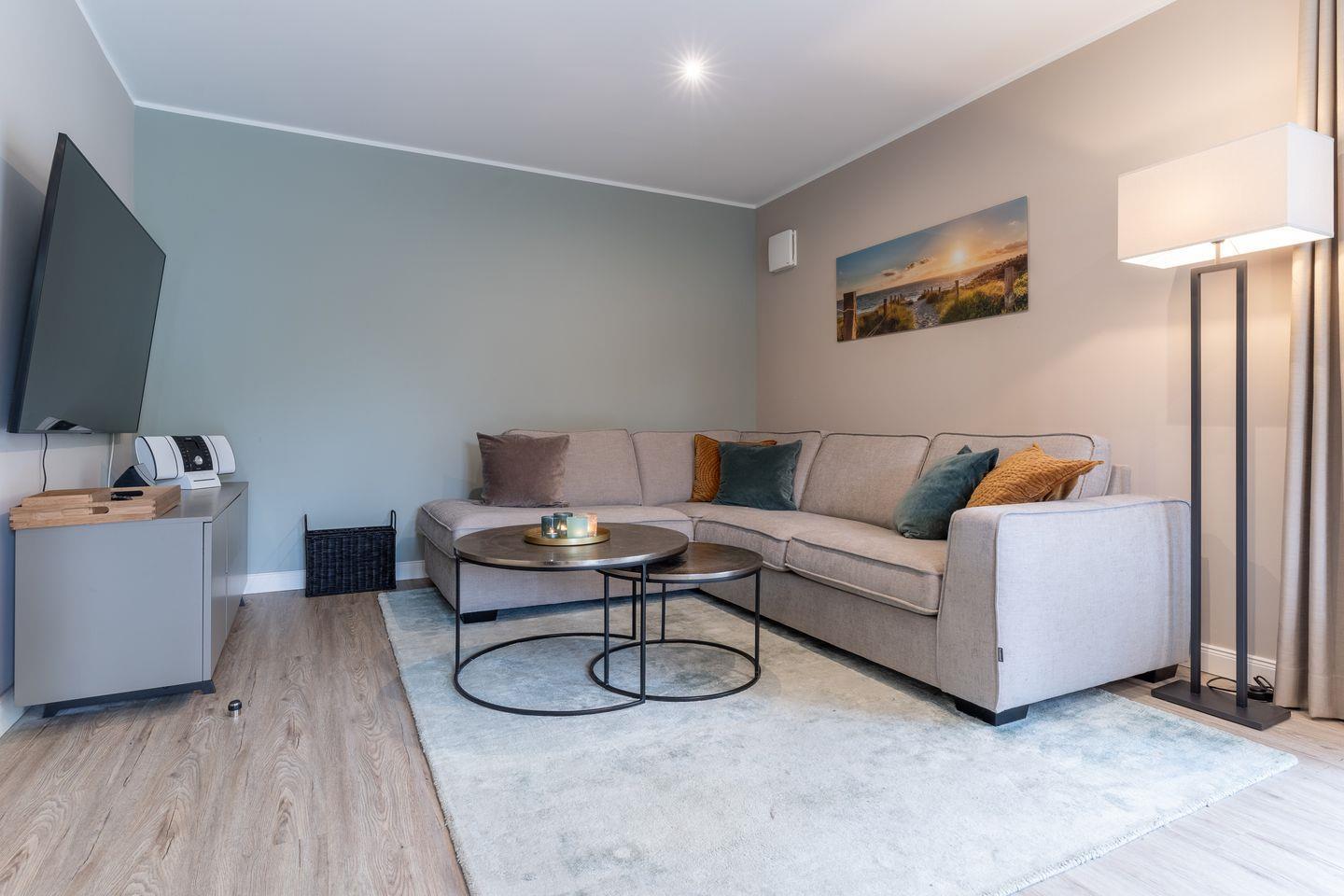 Im Erdgeschoss der Doppelhaushälfte Summerdiek 8 erwartet Sie das geräumige, komfortabel ausgestattete Wohnzimmer mit integrierter Küche.