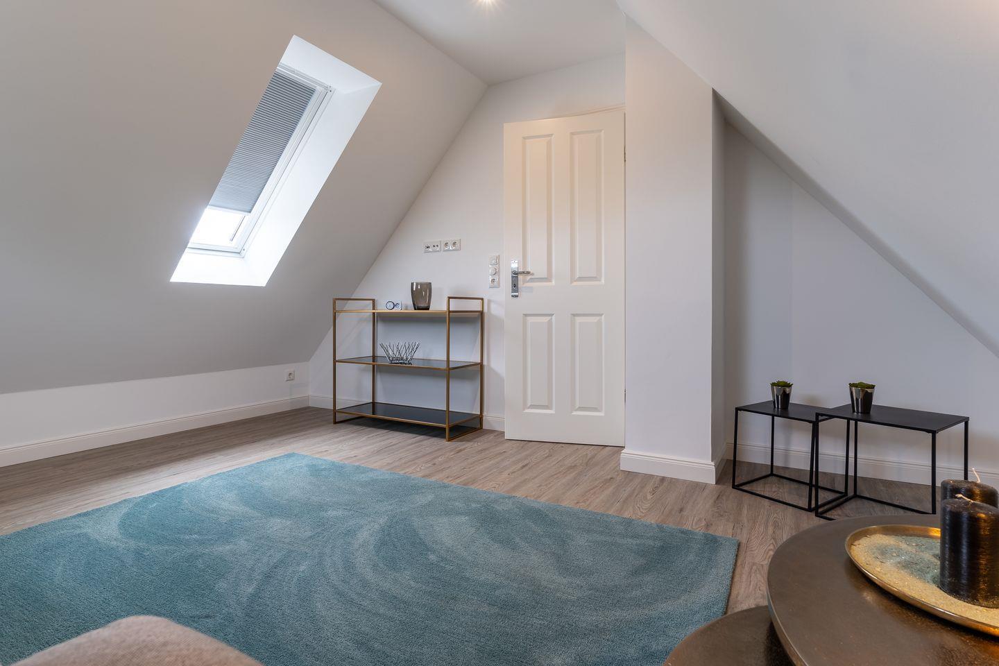 Das Obergeschoss bietet zwei weitere Schlafzimmer, eins davon mit eigenen TV. Das erste Schlafzimmer verfügt über ein komfortables 180x200cm Boxspringdoppelbett sowie einen Kleiderschrank und Sessel.