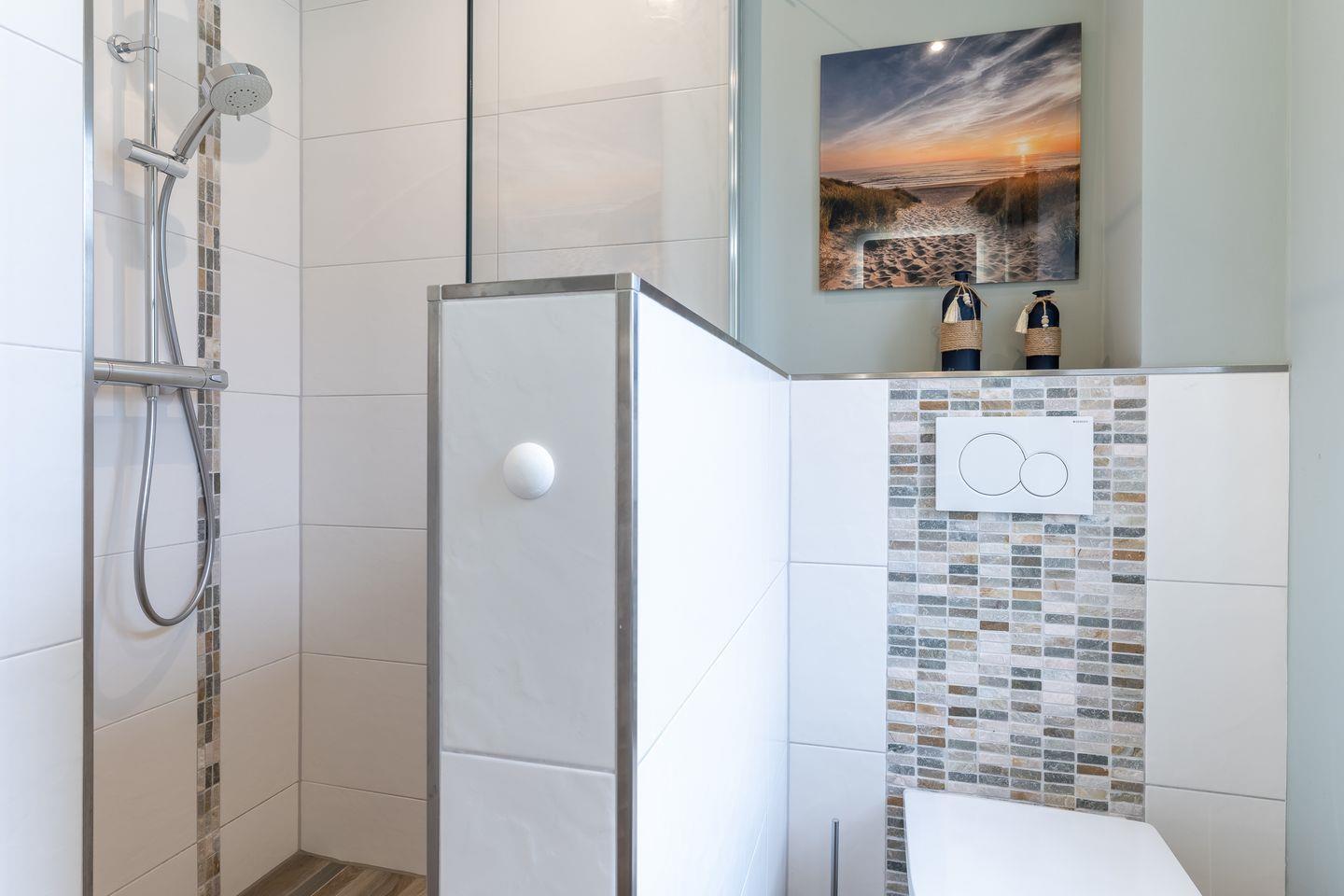Die Badezimmer sind mit Schminkspiegel und Haartrockner ausgestattet. Für vorgewärmte und schnell trocknende Handtücher sorgt ein elektronischer Handtuchtrockner. Pro Doppelhaushälfte ist weiterhin eine Personenwaage vorhanden. Das große Badezimmer verfügt ebenso über eine ALEXA-Einheit. Schlaf- sowie Wohnzimmer sind mit Plissees bzw. Vorhängen ausgestattet, die eine komplette Verdunklung ermöglichen. Weiterhin finden Sie in Wohn- und Schlafzimmern mit Fliegengittern versehene Fenster vor.
