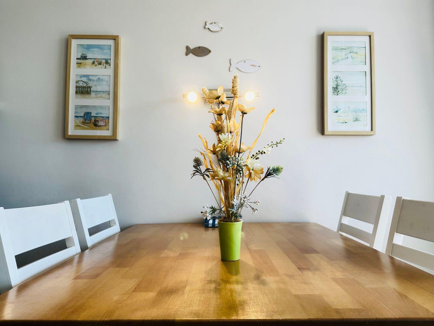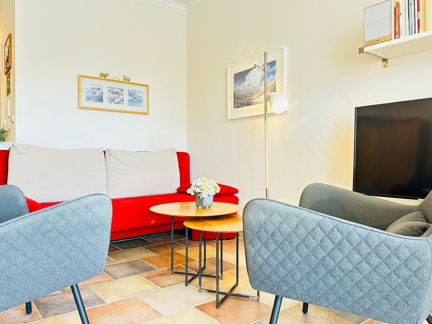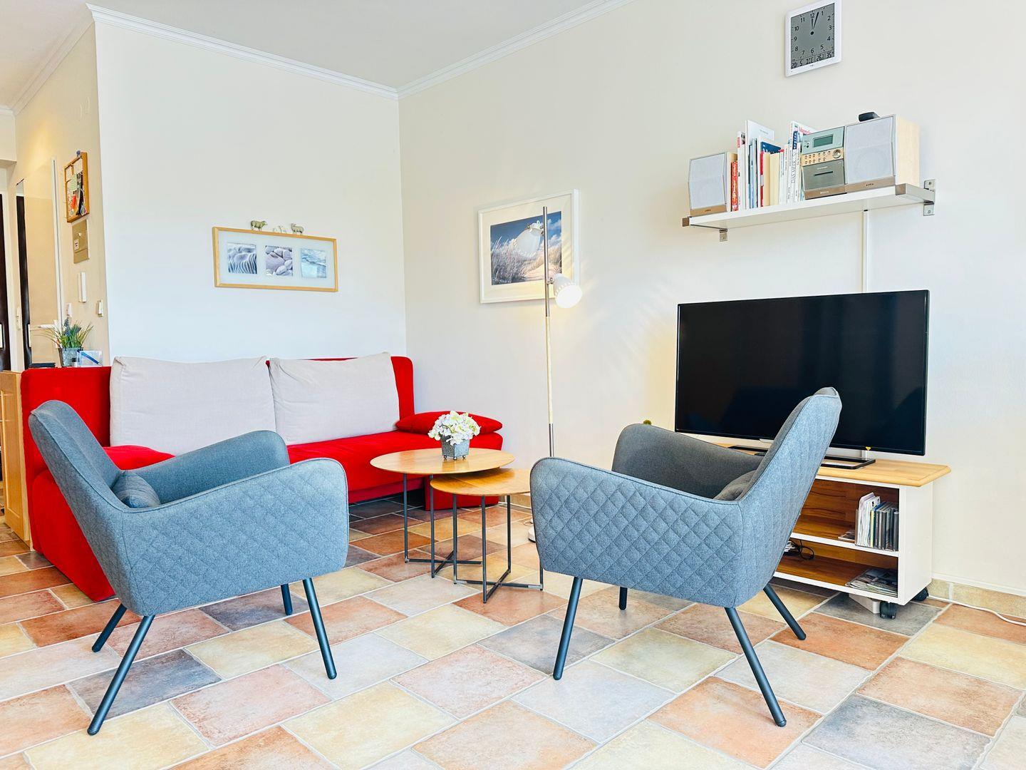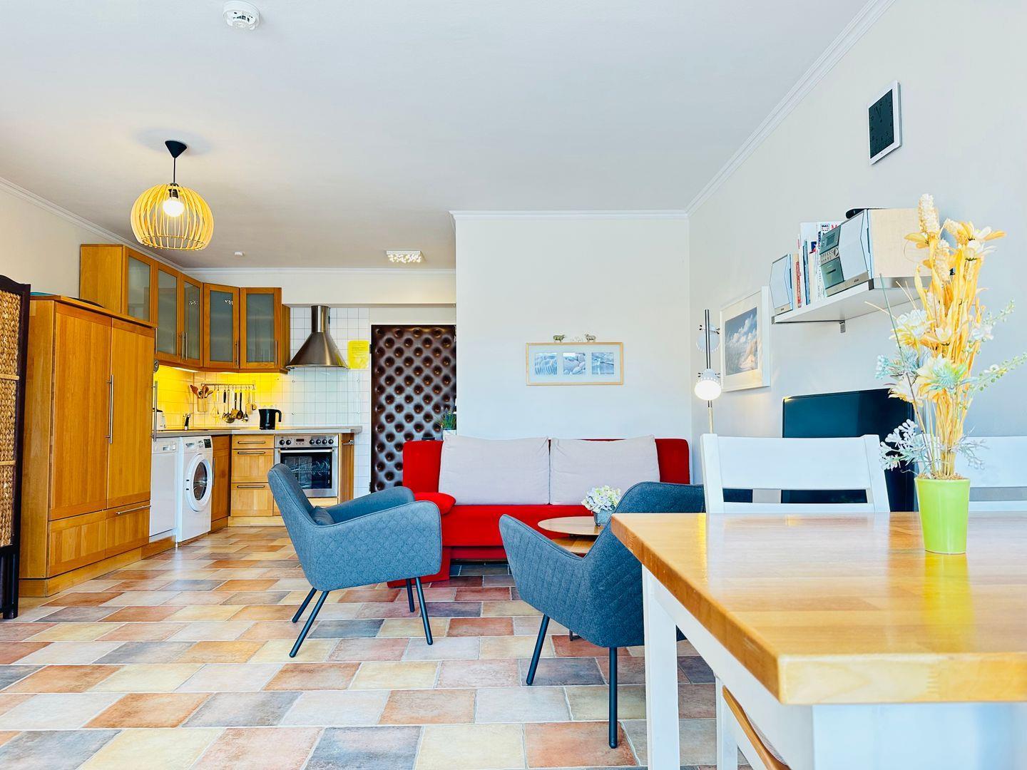 Die Ferienwohnung "Residenz Whg. 11" bietet auf ca. 41 qm eine geschmackvolle und gemütliche Unterkunft im zentralen Ortsteil Bad von St. Peter-Ording. Die offene Einbauküche ist modern und bestens ausgestattet, ideal, um Ihre Lieblingsgerichte zuzubereiten. Der Wohnraum überzeugt mit viel Liebe zum Detail und einer angenehmen Wohlfühlatmosphäre. Ein bequemes Doppelbett und ein Schlafsofa bieten Platz für bis zu drei Personen, während ein modernes Duschbad, ein Flachbildfernseher mit Kabel-TV-Anschluss und eine Musikanlage für zusätzlichen Komfort sorgen. Kostenloses WLAN ist selbstverständlich verfügbar.