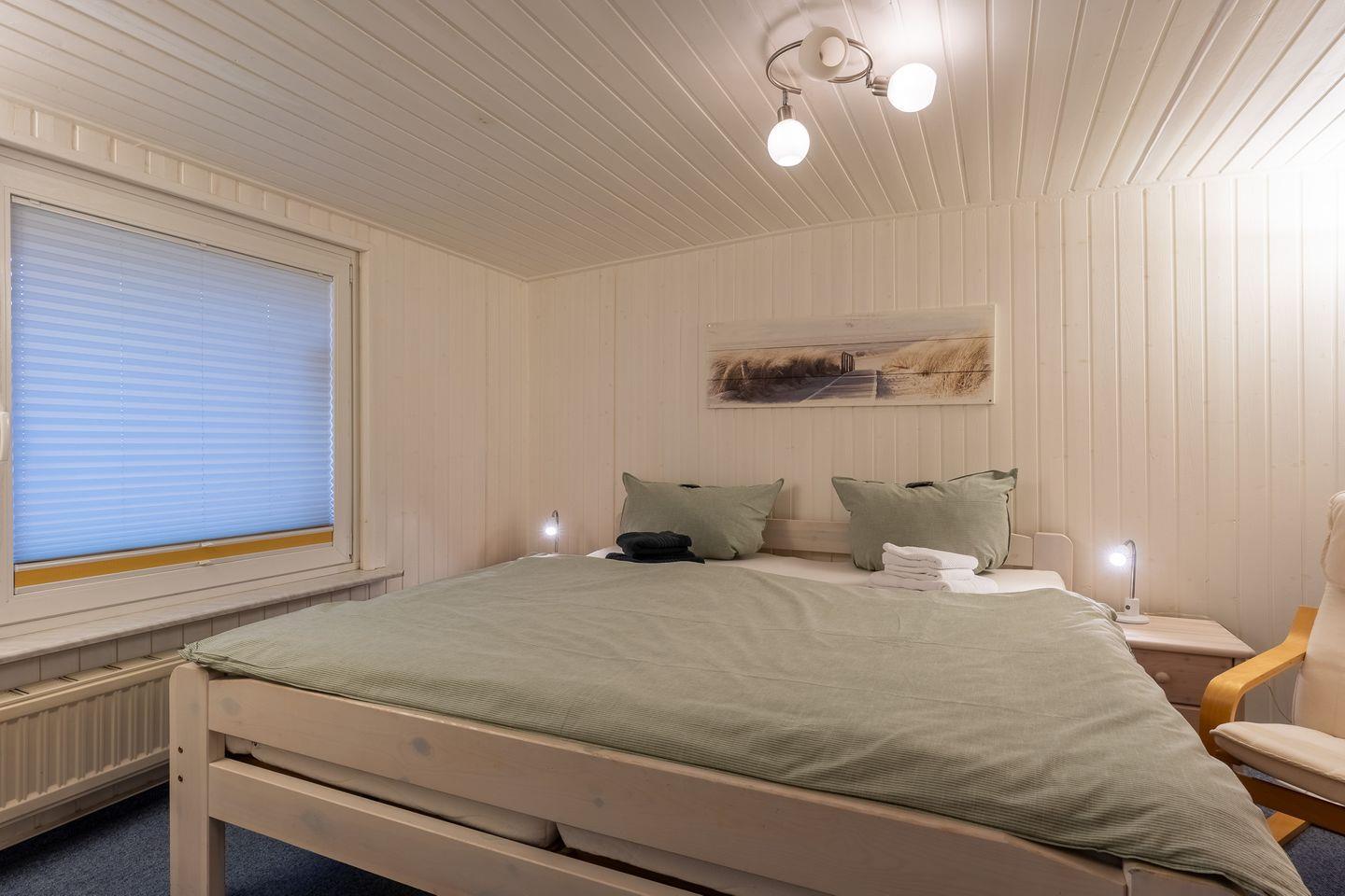 Die großzügige Ferienwohnung 05 im Gästehaus Nordlicht bietet auf 100 m² Platz für bis zu 6 Personen. Ausstattung: 3 Schlafzimmer mit Doppelbetten, 2 Bäder (Duschbad und Gäste-WC), voll ausgestattete Küche, Wohnbereich mit Schlafsofa, WLAN und Terrasse/Wintergarten. Nichtraucher, keine Haustiere. Parkplatz Nr. H direkt vor dem Haus.