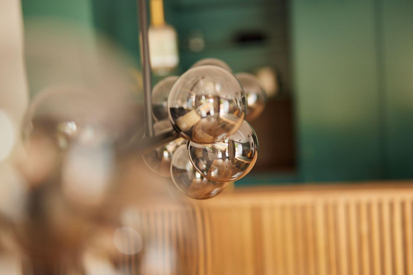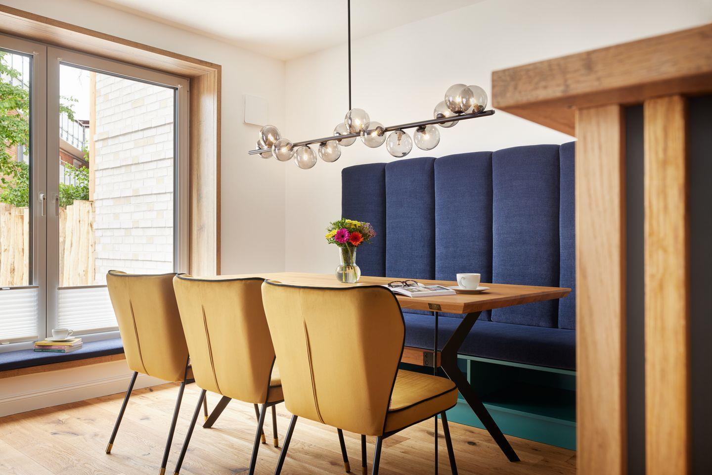 Der Wohn- und Essbereich mit integrierter Küche und Design-Polstermöbeln lädt zum entspannten Zusammensein ein.