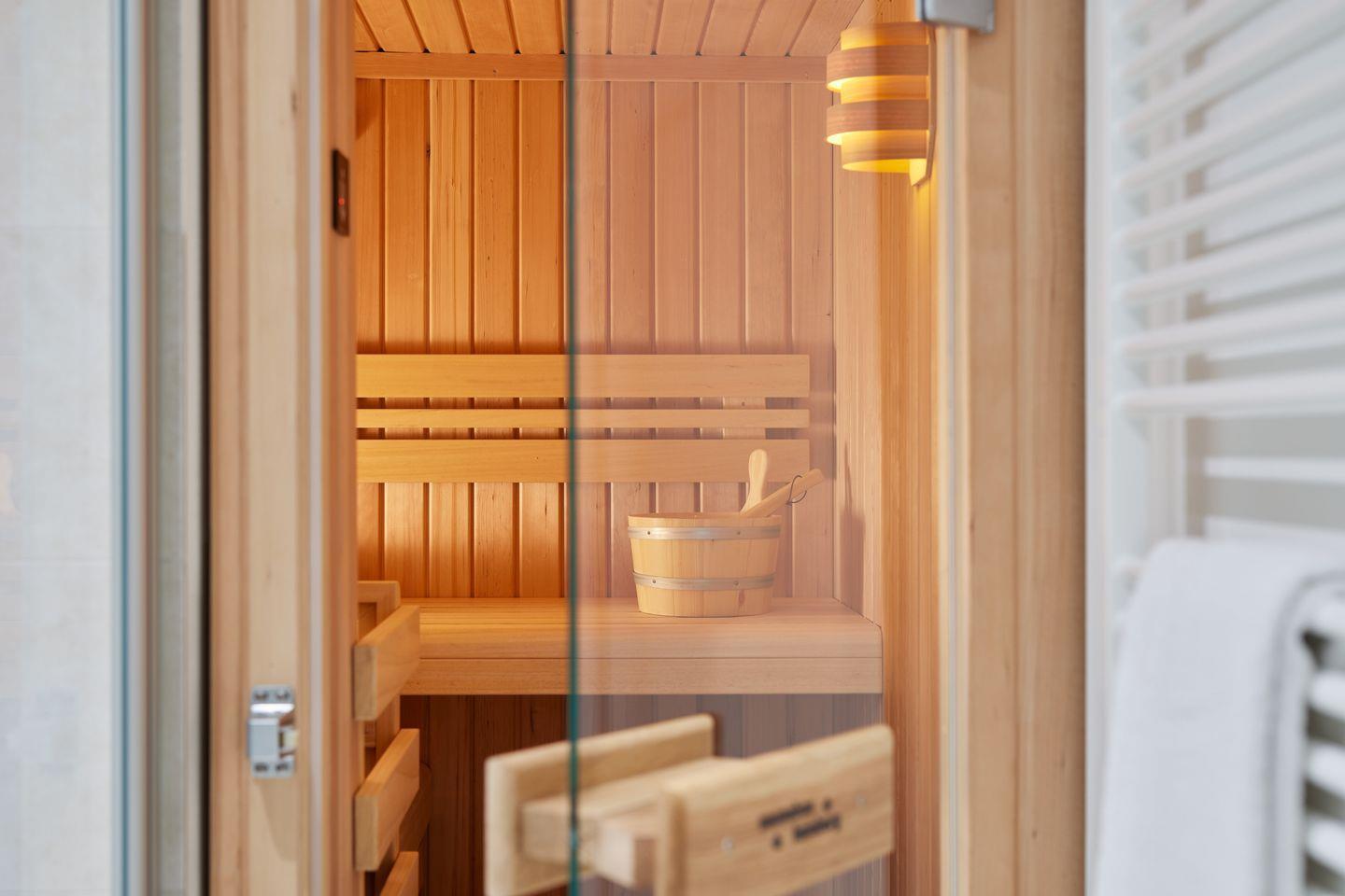 Besonders komfortabel: zwei moderne Badezimmer mit begehbarer Dusche, eines davon mit eigener Holzsauna.