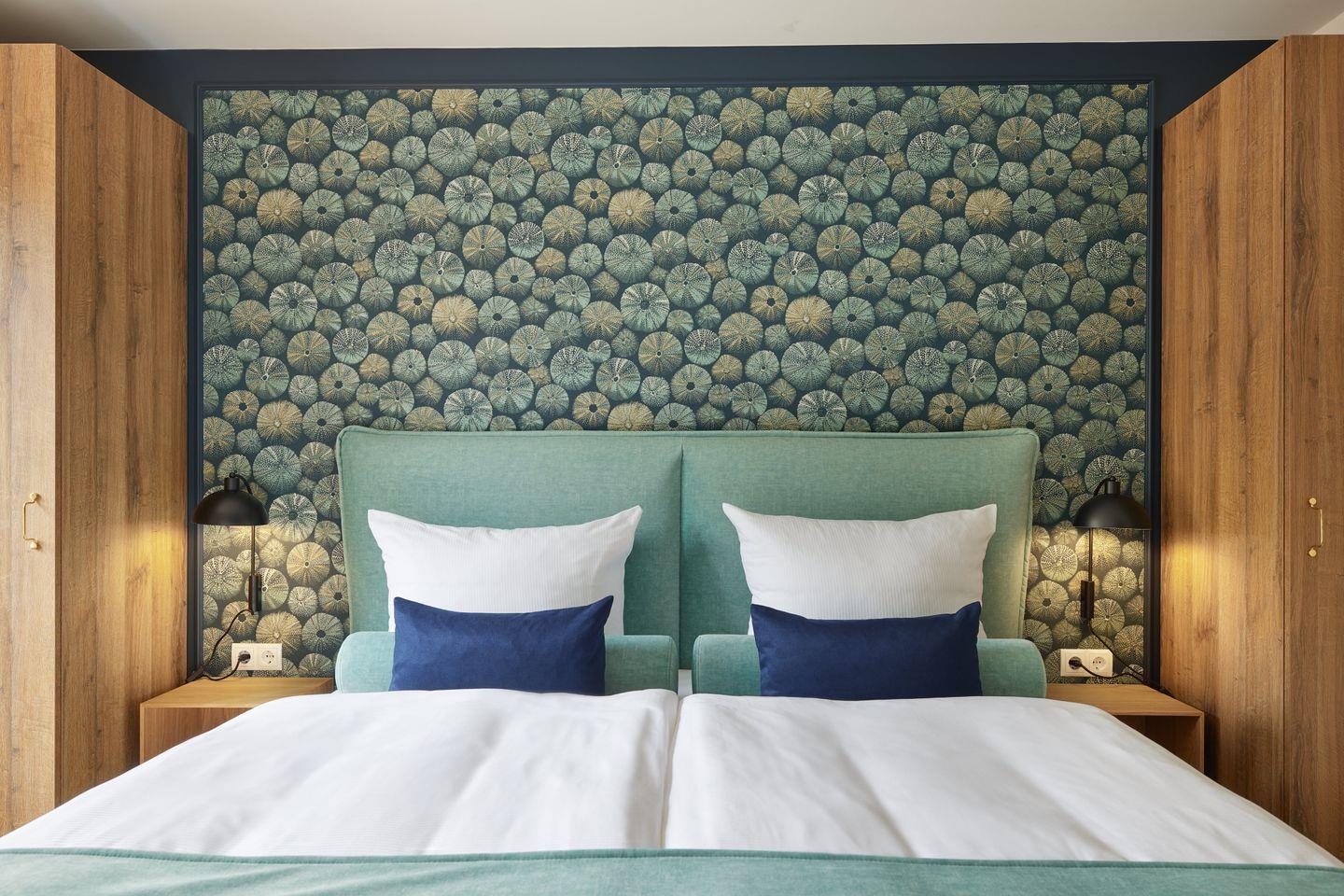 Der offene Grundriss des ca. 98 m² großen Apartments schafft ein großzügiges Wohngefühl. Der Wohn- und Essbereich mit integrierter Küche und Design-Polstermöbeln lädt zum entspannten Zusammensein ein und grenzt direkt an Ihre private Sonnenterrasse. Ein Highlight ist die hochwertige Küche mit türkisfarbenden Fronten und goldenen Armaturen – stilvoll und maritim. Zwei Schlafzimmer mit bequemen Boxspringbetten bieten Platz für vier Gäste. Besonders komfortabel: zwei moderne Badezimmer mit begehbarer Dusche, eines davon mit eigener Holzsauna.
