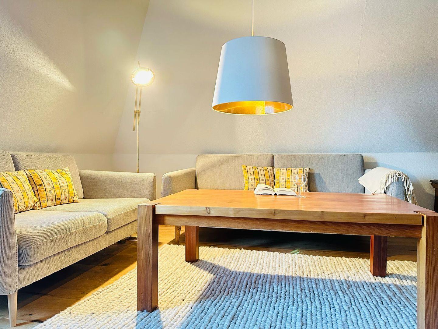 Die gemütliche Ferienwohnung im Ortsteil Dorf unter Reet ist ca. 55 qm groß und hat 1 Schlafzimmer (dies ist über eine etwas steile Treppe im DG zu erreichen). Sie befindet sich im 1. Obergeschoss und bietet Platz für 3 Personen (max. 2 Erw. + 1 Kind). Zur Ausstattung gehören unter anderem ein Badezimmer mit Wanne, Küche mit 2-Platten Ceranfeld, Wohnzimmer mit Couch, TV, PKW-Stellplatz und vieles mehr. 1 Hund ist auf Anfrage erlaubt. Nichtraucherwohnung.