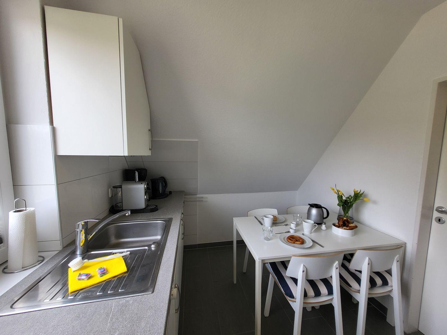 3 Zimmer Wohnung, Balkon, separate Küche, 1 Schlafzi. mit Dopplbett, 1 Schlafzi. mit 2 Einzelbetten, Laminatboden, Fliesenboden, Parkplatz vorhanden, überdachte Fahrradabstellmöglichkeit vorhanden, Nichtraucher, 1 kleiner Hund herzlich willkommen. WLAN, familienfreundlich, hundefreundlich, kostenfreier Hochstuhl vorhanden