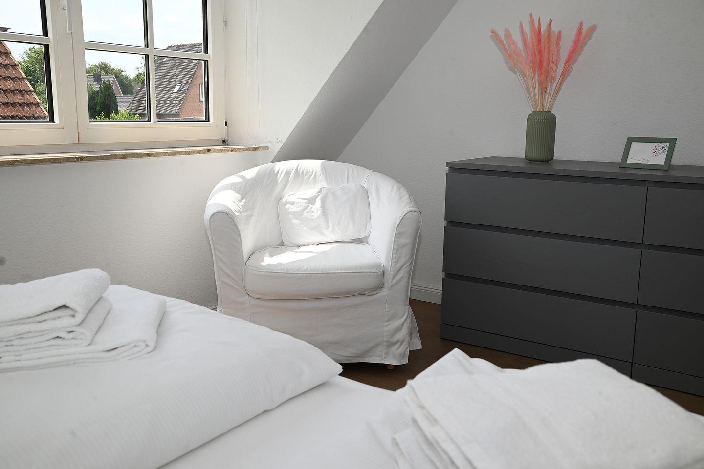 Die ruhige Lage im Ortsteil Böhl verbindet naturnahe Erholung mit kurzer Distanz zum Strand: Der breite Sandstrand sowie die Nordsee sind etwa 1,7 km entfernt, Restaurants erreichen Sie bereits nach 220 Metern.