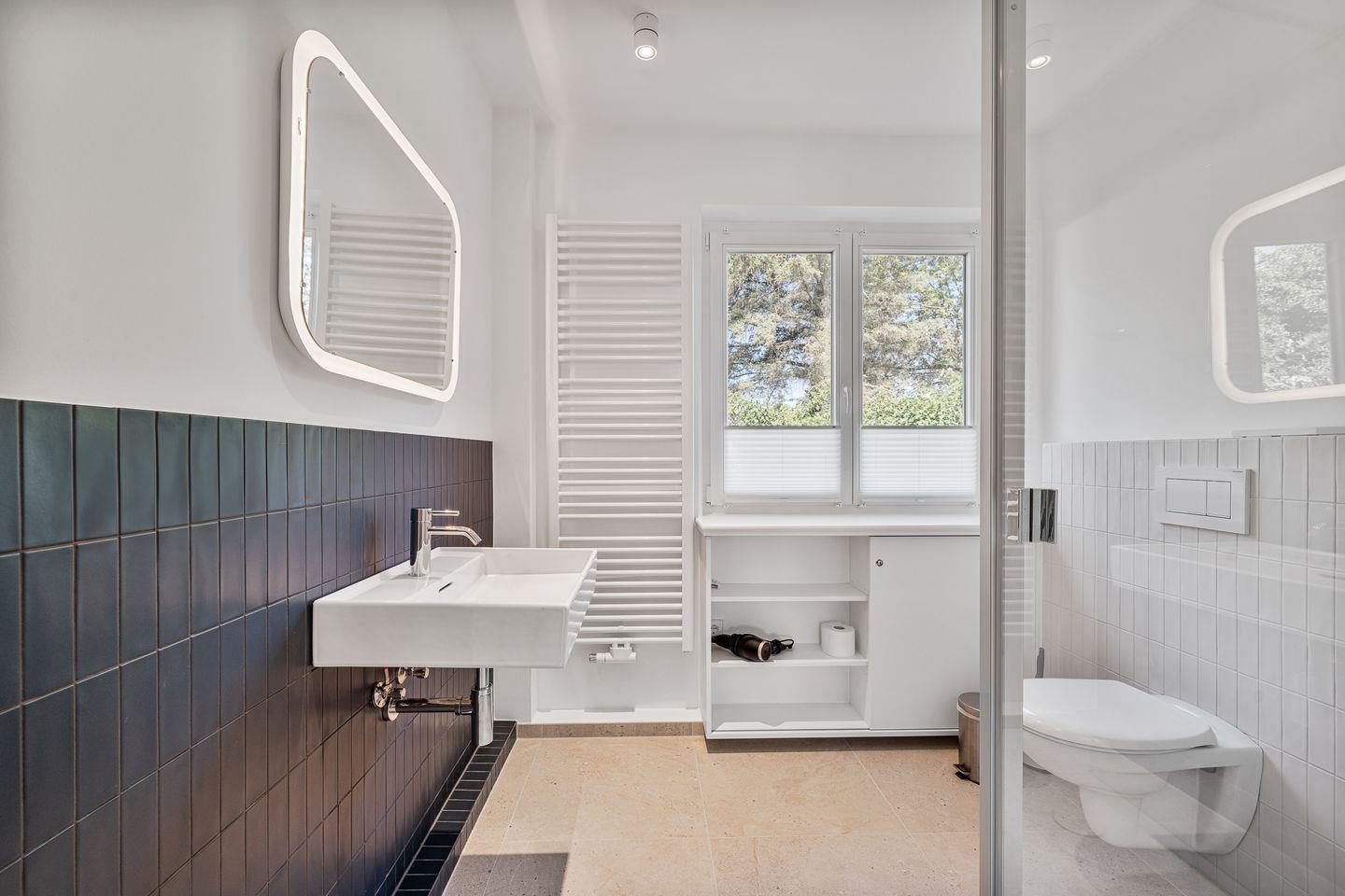 Drei separate Schlafzimmer bieten Schlafmöglichkeiten für insgesamt fünf Gäste. Ein Schlafzimmer verfügt über einen weiteren TV. Die mit hochwertigen Kaschmir-Ziegenhaar Teppichboden ausgestatteten Schlafräume sorgen für ein angenehmes Wohngefühl. Zwei moderne Badezimmer stehen Ihnen zur Verfügung, eines im Erdgeschoss und eines im Zwischengeschoss unter den Schlafräumen. Sie sind jeweils mit Dusche und WC ausgestattet.