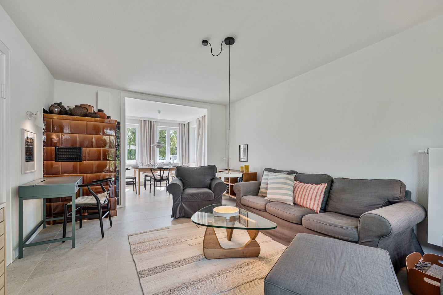 Der Außenbereich eröffnet zahlreiche Möglichkeiten zur Entspannung. Eine Terrasse mit Gartenmöbeln und Sonnenschirm lädt zum Verweilen ein, während eine Liegewiese weitere Erholung bietet. Die großen Fenster sind durch Sichtschutz und die Schlafräume mit Fliegengitter geschützt, sodass Sie auch an warmen Tagen komfortabel lüften können. Ein historischer Kamin ist nicht funktionsfähig, dennoch wunderschön dekorativ.