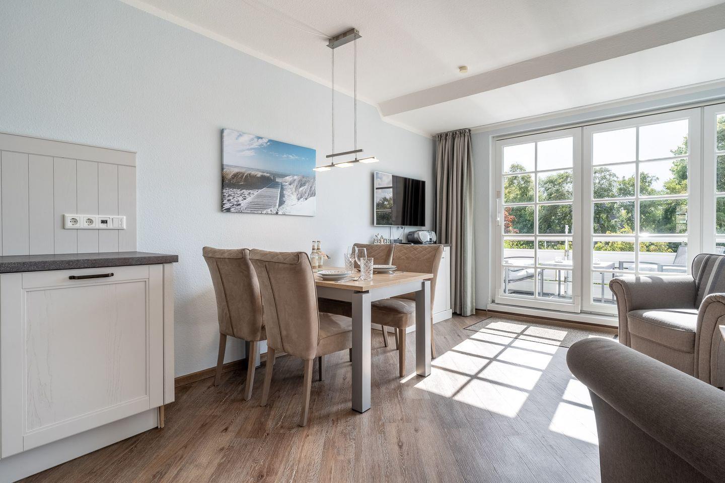 Ein weiteres Highlight ist der private Balkon mit Gartenblick und Gartenmöbeln – ein idealer Ort zum Verweilen nach einem Tag am Strand oder bei Spaziergängen in der Umgebung. Bücher und Spiele stehen für gemütliche Stunden bereit. Ein Safe sorgt für die sichere Aufbewahrung Ihrer Wertsachen.