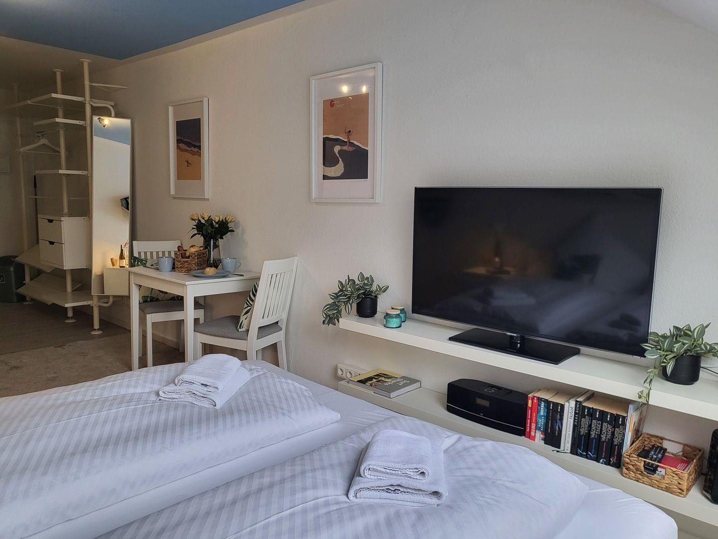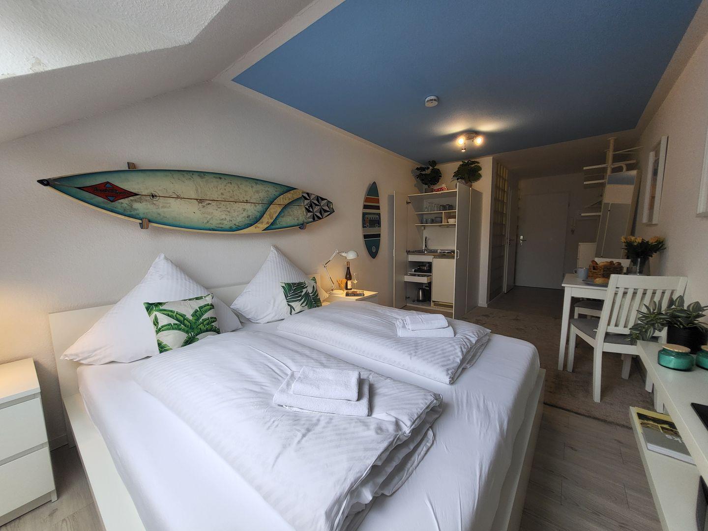 Modernes 1 Raum Appartement mit Doppelbett , kleine Schrankküche (Pantry), sehr zentrale Lage.