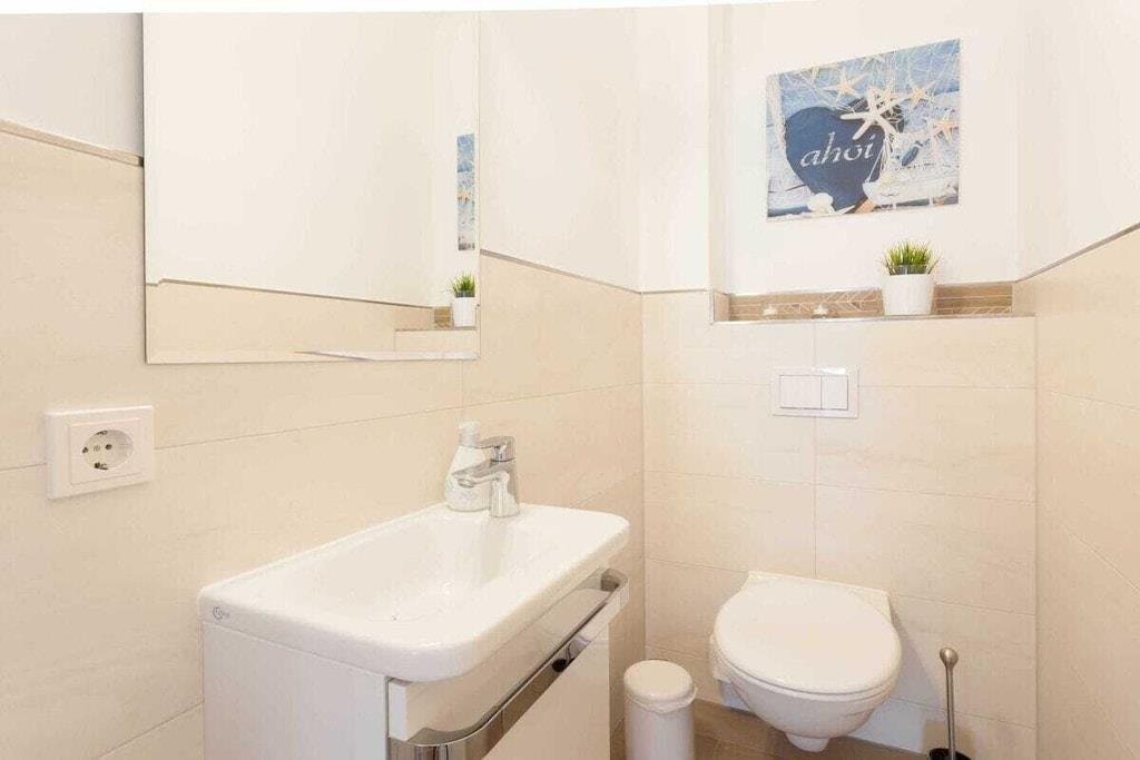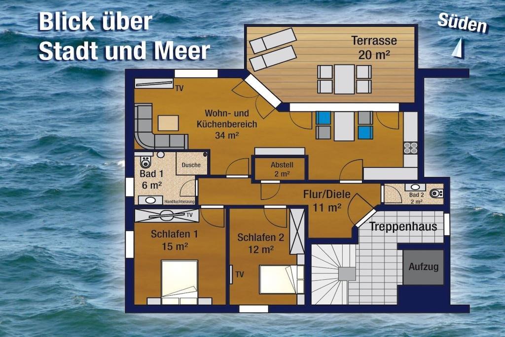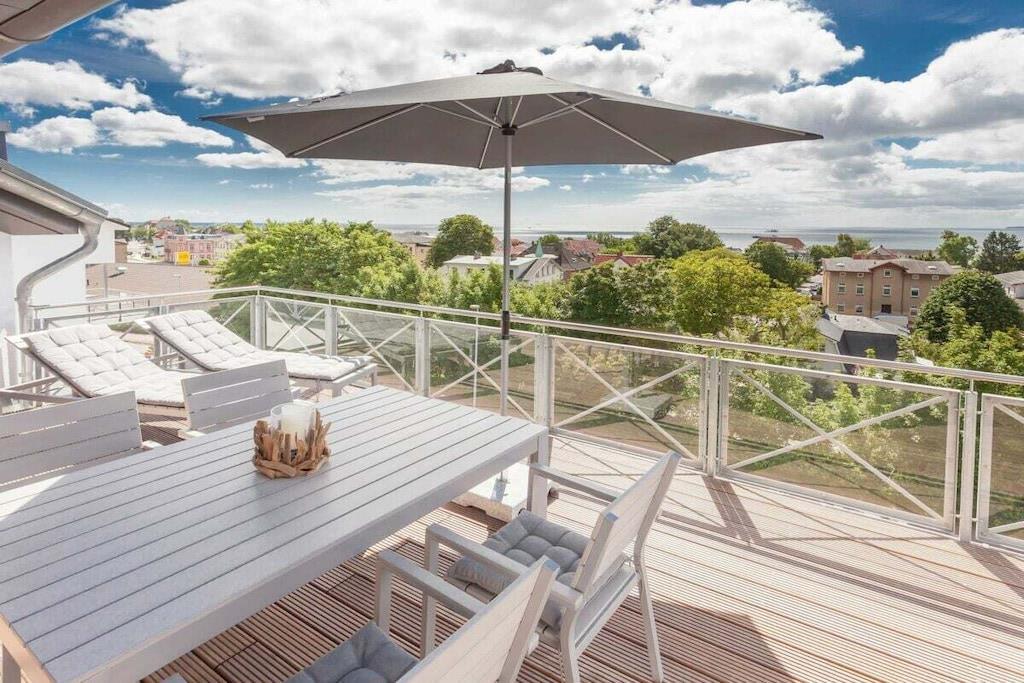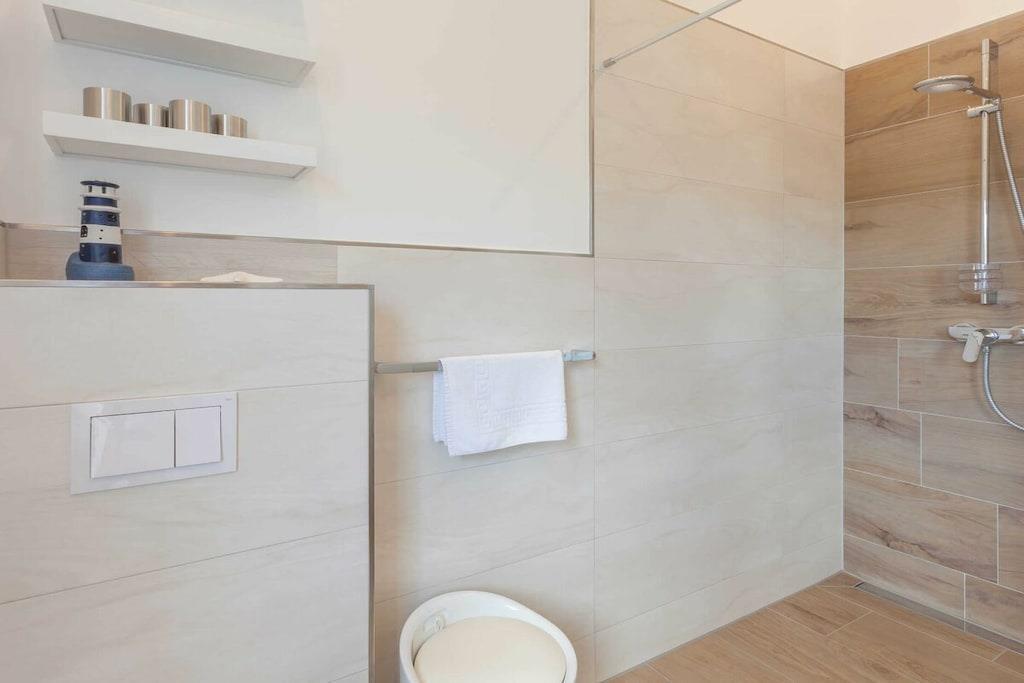 Would you like to enjoy and relax with a fantastic sea view and a gentle breeze, but don't want to miss out on a central location and comfort? Then the Sea Spirit Penthouse in the Haus am Kreidefelsen, with its exclusive atmosphere right next to the national park, is just right for you. Modern, comfortable furniture in the living and dining areas, a comfortably equipped kitchenette, a guest toilet, a bathroom with a shower and level access, and underfloor heating, two bedrooms with double beds and LED TVs, a south-facing, 20 m² roof terrace with magnificent sunrises (at least from November to February) and a fantastic sea view from east to west, ensure the perfect relaxation during your vacation. Relaxation couldn't be better! Be our guest - we look forward to welcoming you.