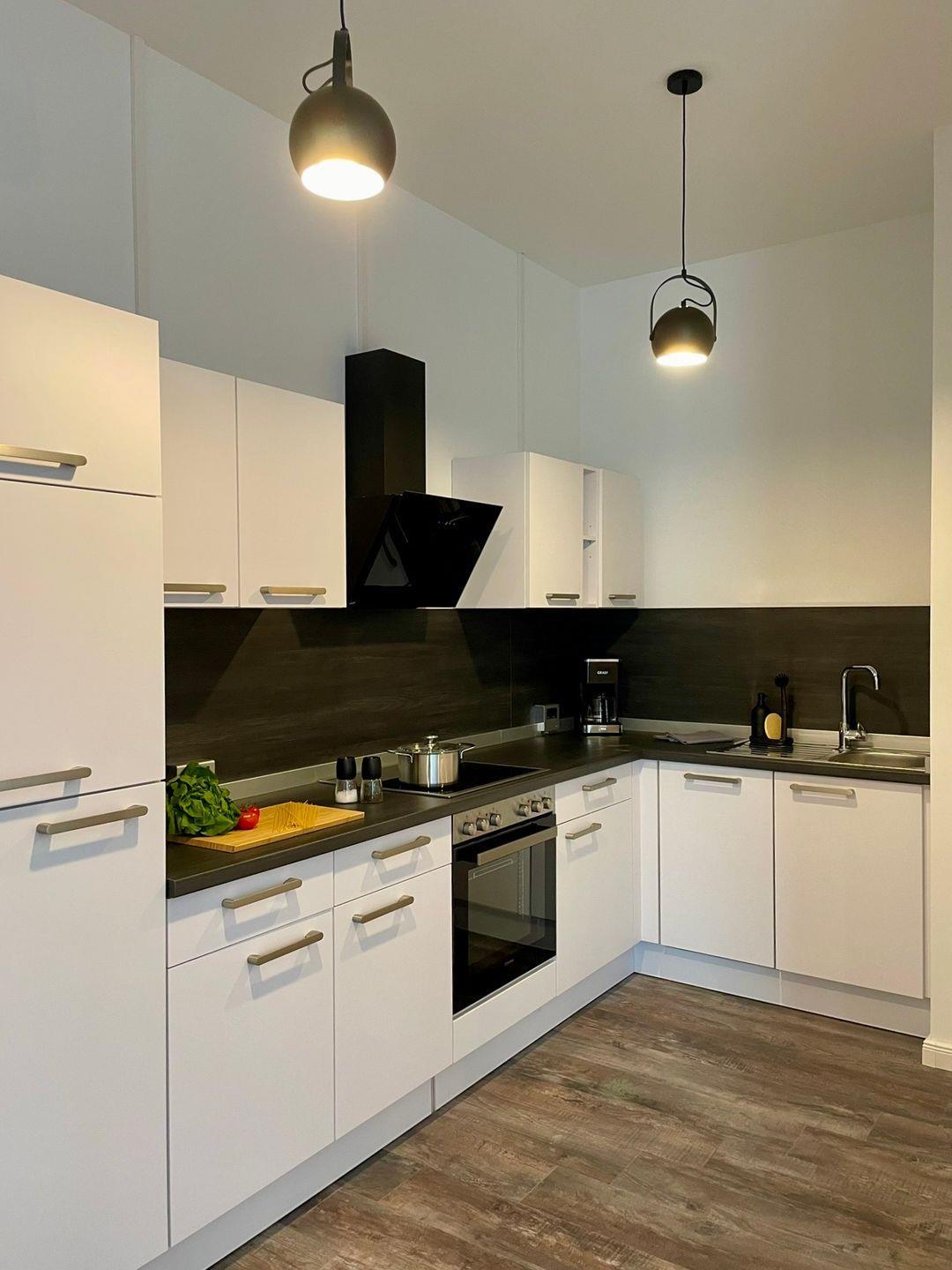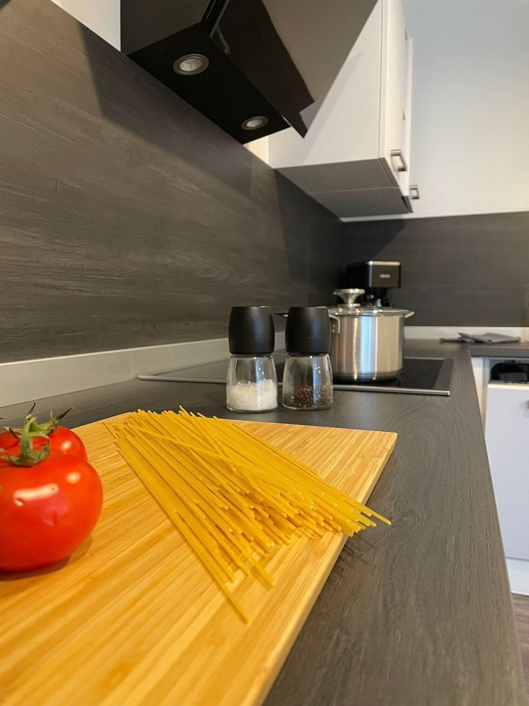 In der hochwertigen offenen Küche findest du neben einem Kochfeld mit vier Kochplatten einen Backofen sowie einen Kühlschrank mit Gefrierfach und einen Geschirrspüler. Die sorgfältig ausgewählten Küchenutensilien helfen dir beim Kochen und Genießen. Zu unserer Grundausstattung gehören außerdem Salz, Pfeffer und Zucker. Weiterhin stehen dir für dein Frühstück ein Toaster sowie für die Kaffee- und Teezubereitung eine Kaffeemaschine und ein Wasserkocher zur Verfügung.