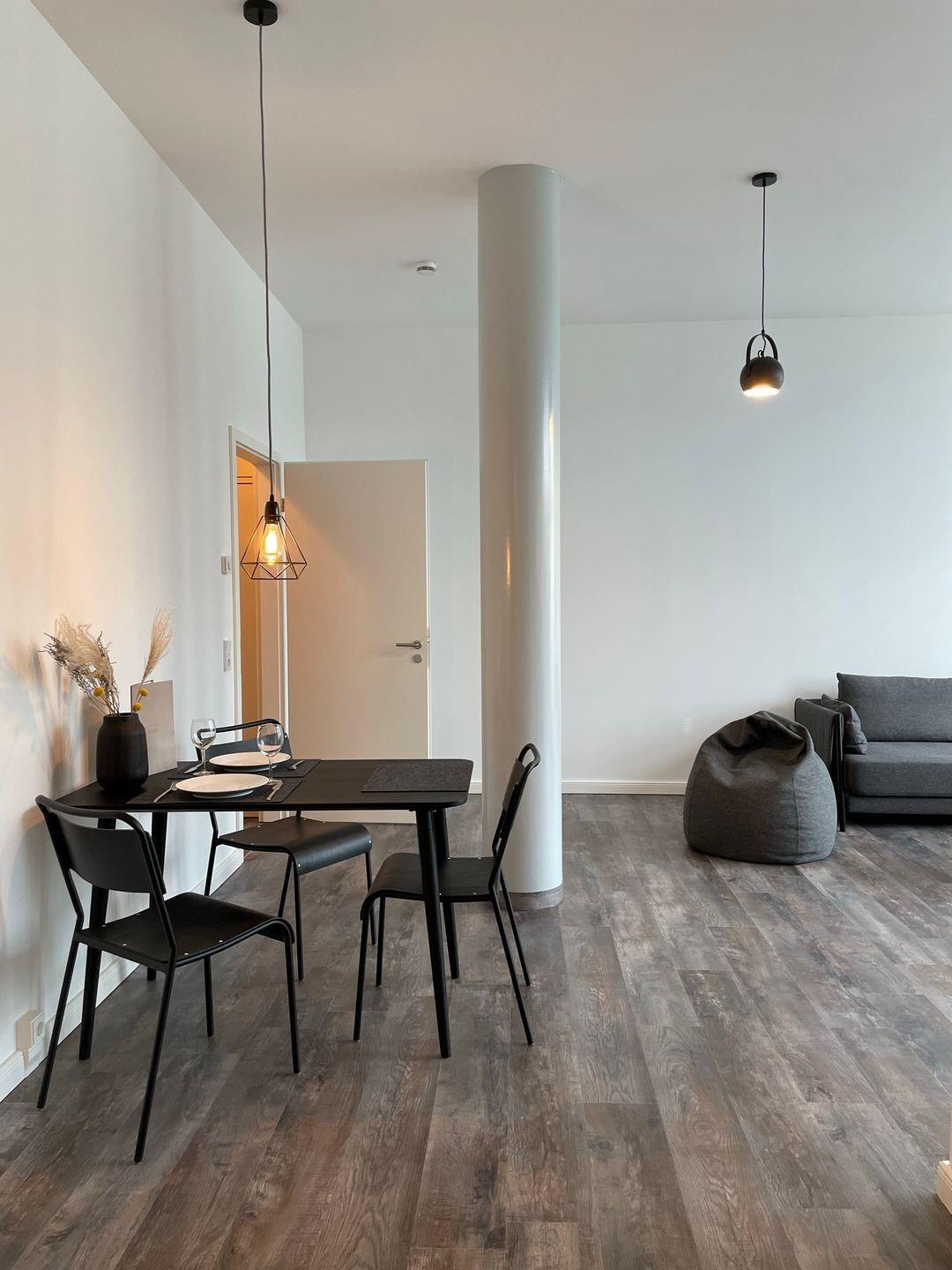 Der großzügige Wohn- und Essbereich ist mit einem Sofa sowie einem Esstisch (120 cm x 70 cm) ausgestattet. Für einen gemütlichen Fernsehabend steht ein 50“ Fernseher mit Kabelanschluss für dich bereit. Auch deinen Netflix-Account kannst du darauf nutzen. In der gesamten Wohnung stellen wir dir selbstverständlich kostenlos einen schnellen, kabellosen Internetzugang zur Verfügung.