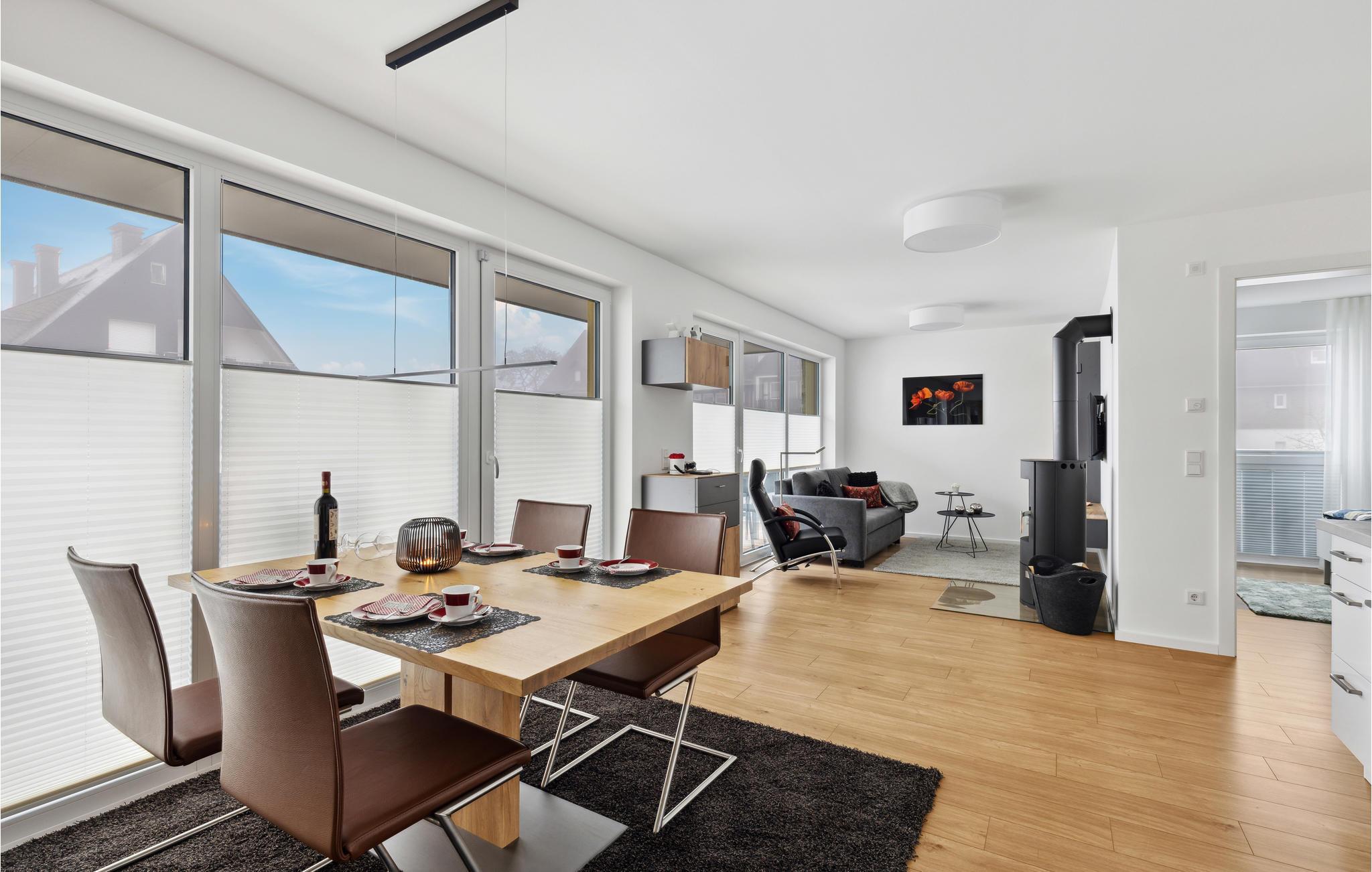Freuen Sie sich auf einen entspannten und abwechslungsreichen Urlaub in dieser Ferienwohnung in Winterberg nahe herrlicher Natur. Zu der gehobenen Ausstattung der Apartments gehören eine komplette Einbauküche inklusive hochwertiger Geräte. Die Wohnung besitzt ein Schlafzimmer und ein sehr helles und geräumiges Wohnzimmer mit einem Lautsprecher (Sountlink Revolve II) von BOSE. Die Ferienwohnung bietet viel Platz für gemeinsame Aktivitäten, egal, ob Sie gemeinsam kochen, einen Spieleabend veranstalten, oder auf den Sofas gemütlich plaudern. Das leise Knistern des Kaminofens sorgt dabei für eine besonders behagliche Stimmung. Die geschmackvolle Einrichtung bietet ideale Bedingungen, um hier in stilvollem Ambiente eine tolle gemeinsame Zeit zu verbringen.