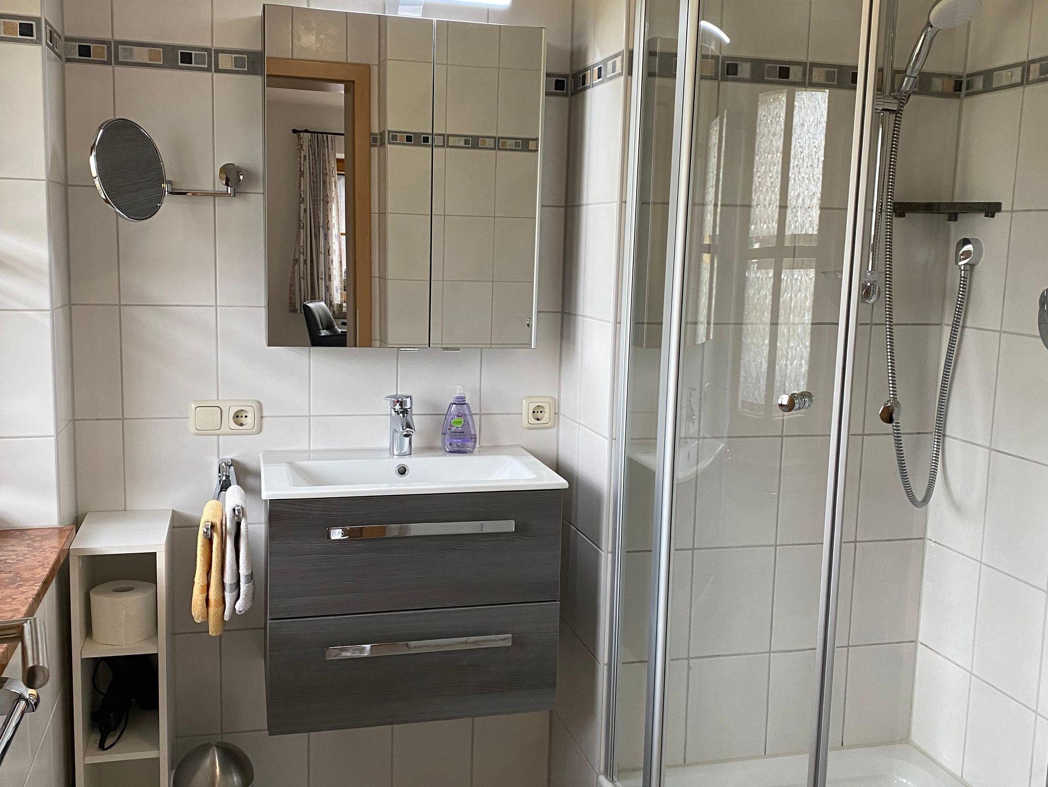 Die Nichtraucher-Ferienwohnung bietet eine Wohnfläche von ca. 43 qm und befindet sich im oberen Stock des Gästehauses. Sie ist ausgestattet mit einem separaten Schlafzimmer, einer gemütlich eingerichteten Wohnküche mit Sitzecke, Essecke, voll ausgestatteter Küchenzeile und einem Badezimmer mit Dusche und WC. Von Ihrem Südwest Balkon genießen Sie einen einzigartigen Blick auf den Watzmann.