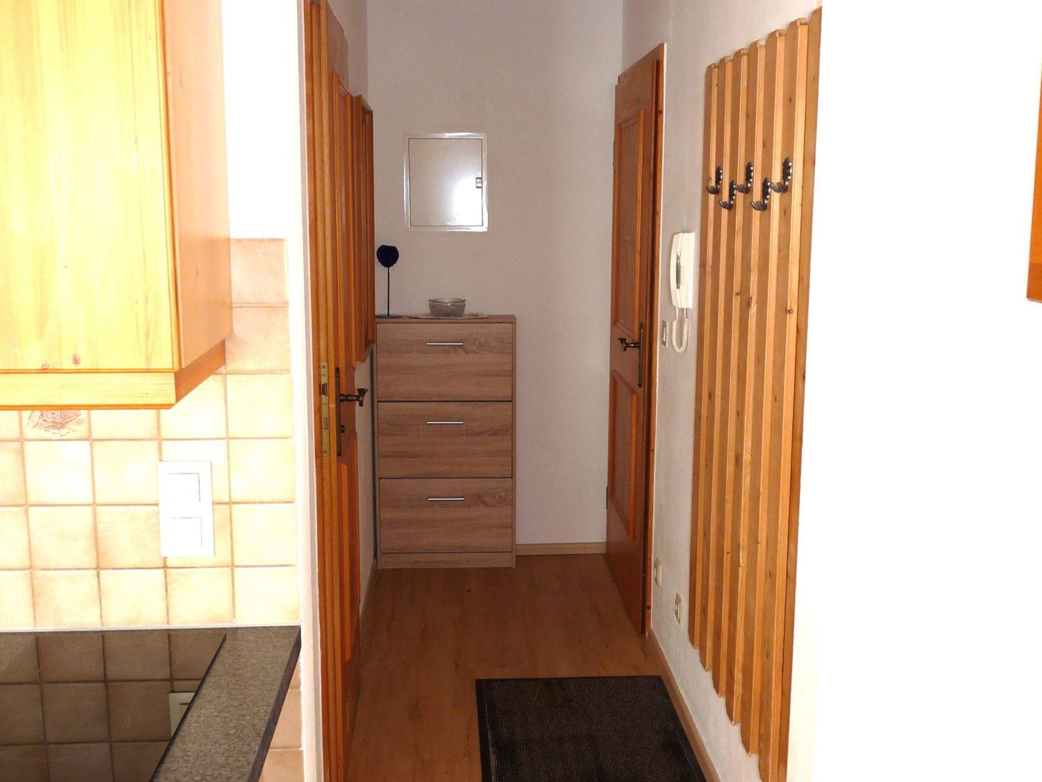 Fewo Steinbock-Neumann, separates Schlafzimmer, Wohnküche mit Essecke, Terrasse