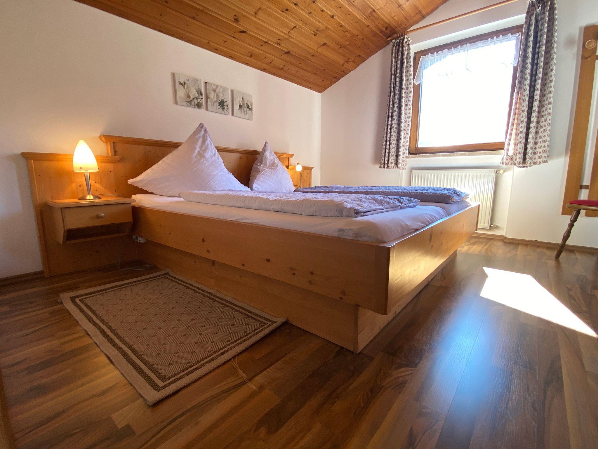 Unsere ruhig gelegene und gut ausgestattete Ferienwohnung besitzt eine Küche mit Kühlschrank, Tiefkühlfach, Glaskeramikkochfeld, Backofen, Kaffeemaschine, Wasserkocher und Toaster. Die Essecke und das Sofa sowie der Flachbildschirm mit Kabel-TV laden zum Verweilen ein. Das Badezimmer verfügt über eine Dusche, WC, Spiegel. Das Schlafzimmer mit Doppelbett, Aufbewahrungsmöglichkeiten, sorgen für einen erholsamen Aufenthalt. Vom möblierten Ostbalkon und Nordbalkon genießen Sie den Blick auf das traumhafte Bergpanorama. Freies W-Lan im ganzen Haus.