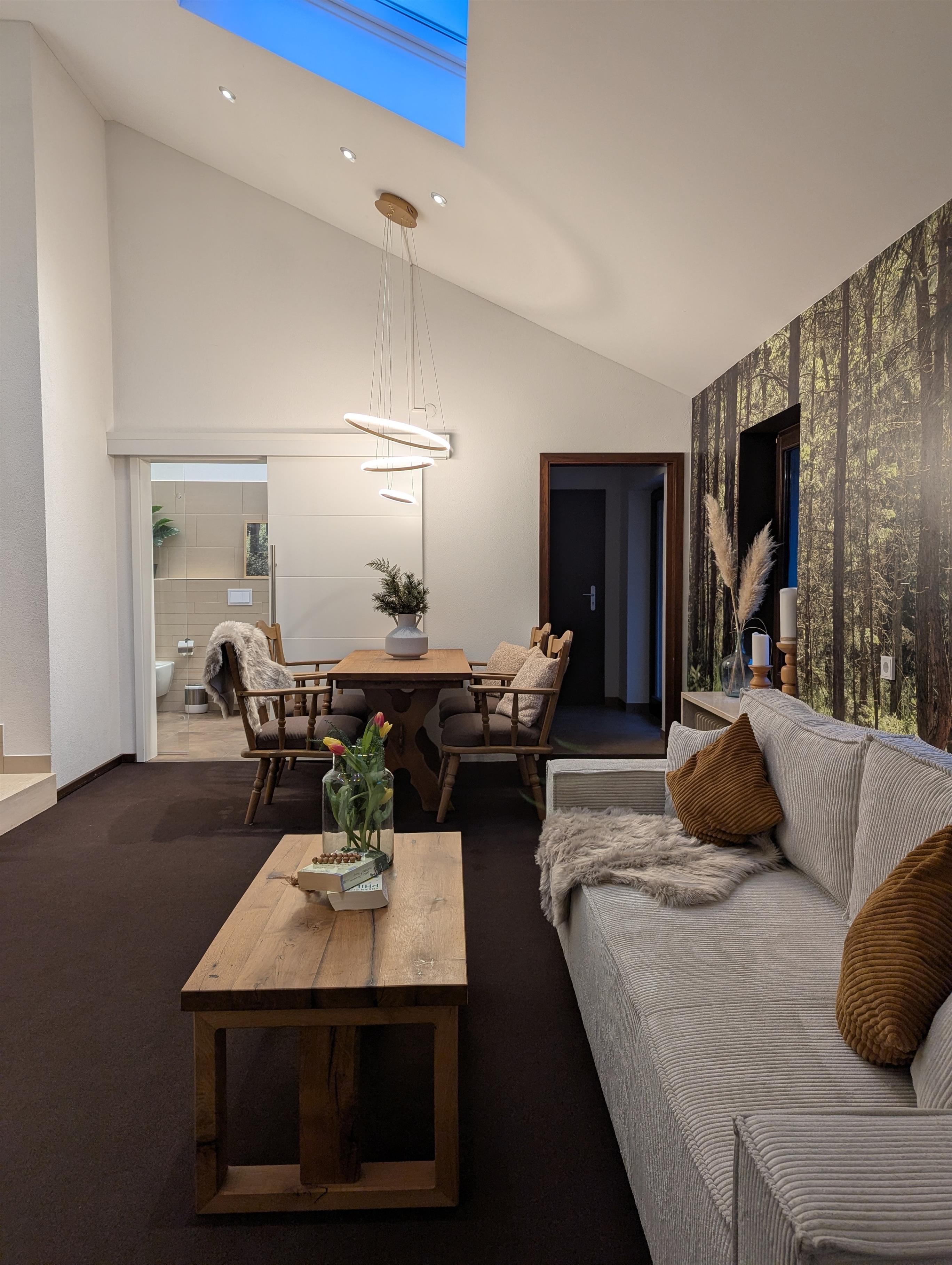 Willkommen in der Baumhaus Suite - dein Rückzugsort inmitten der Rhöner-Natur. Die liebevoll renovierte Wald Villa von 1982 liegt auf einem 6500 m² großen Grundstück am Waldrand, umgeben von großen Bäumen und gemütlichen Plätzen zum Verweilen. Ein Gemeinschaftsraum bietet dir einen herrlichen Blick auf das weitläufige Grundstück. Für kleine Einkäufe gibt es einen charmanten Selbstbedienungsladen direkt im Haus. Hier genießt du absolute Ruhe und findest zahlreiche Orte, um neue Energie zu tanken.