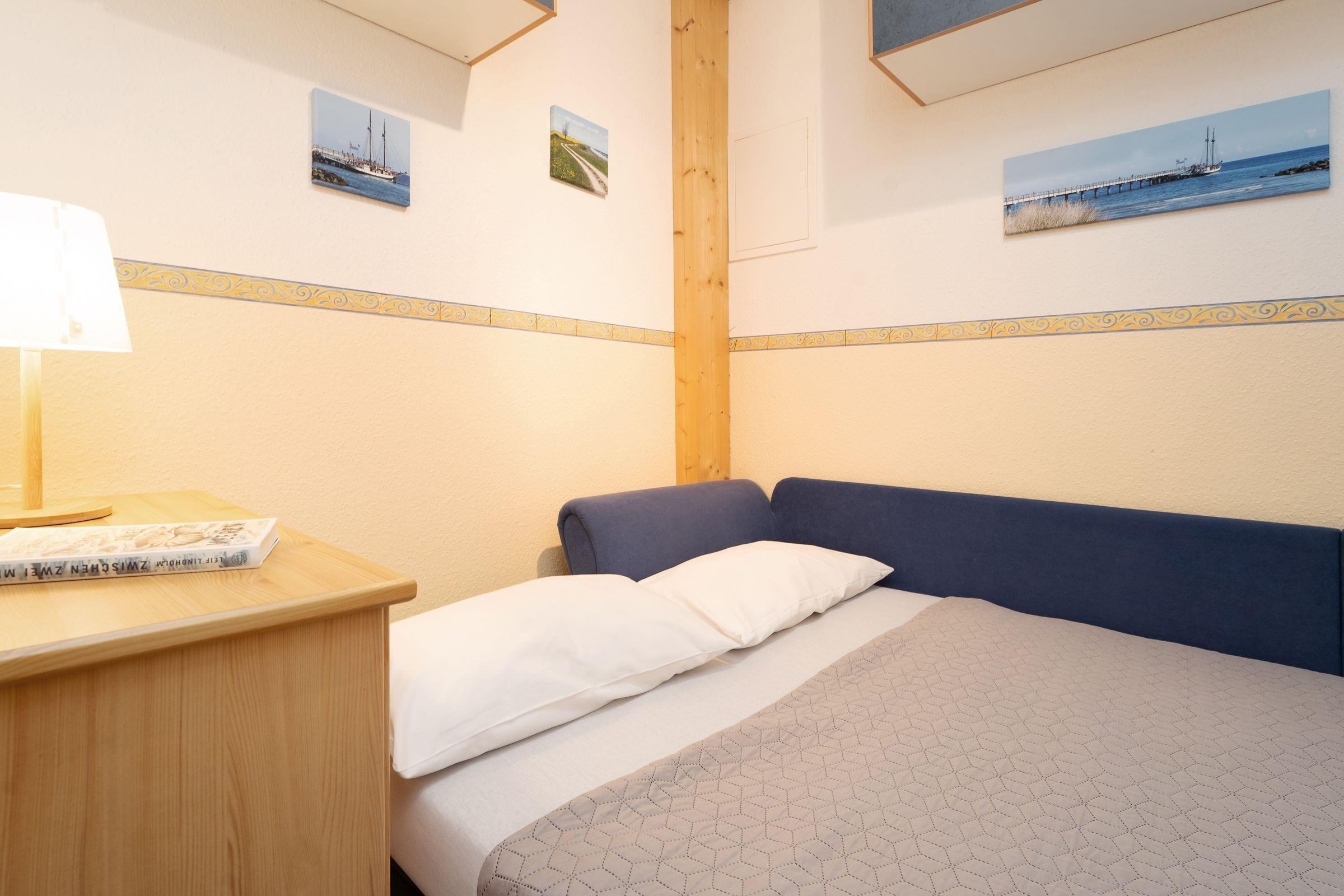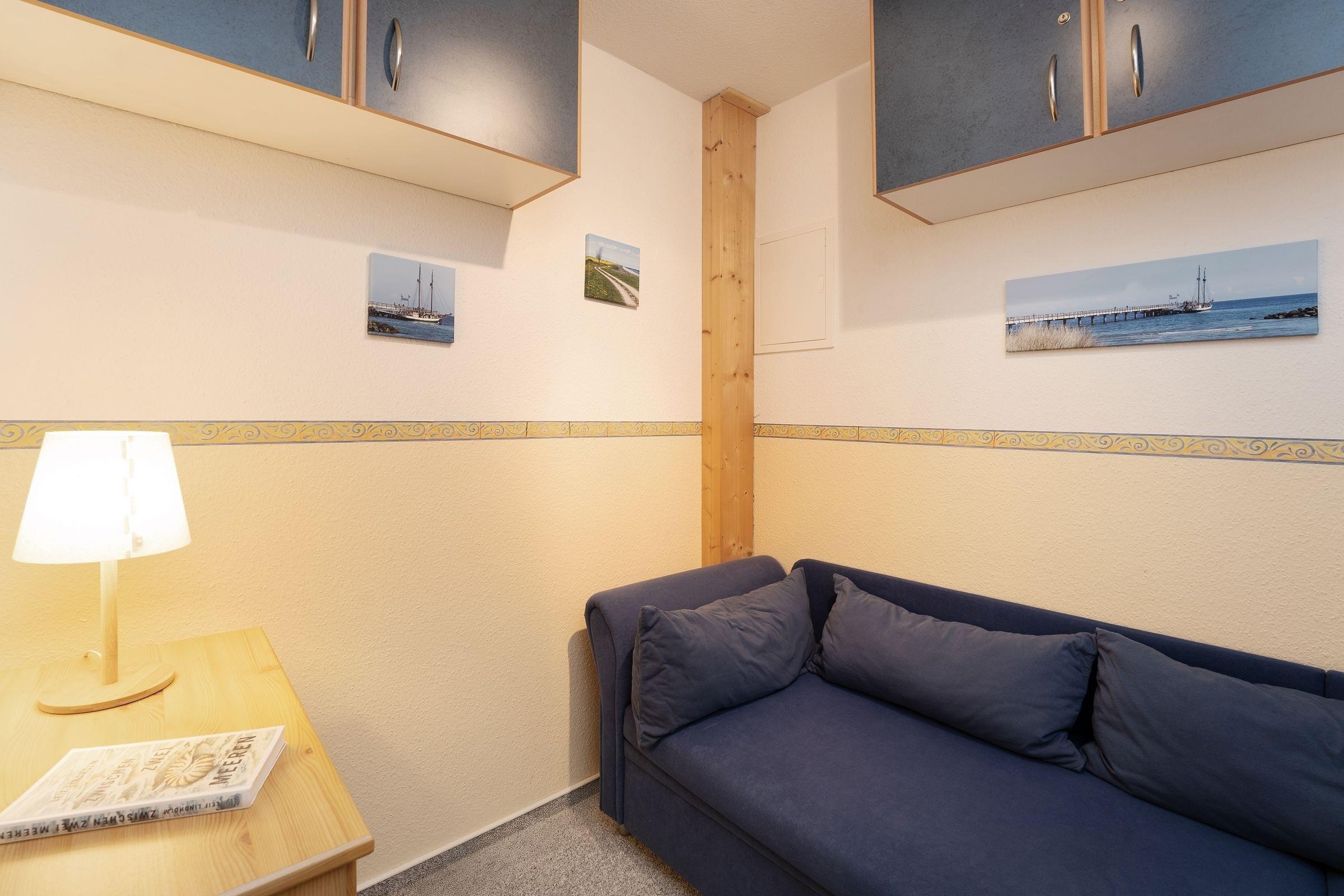 Schlafzimmer 2: Schlafsofa für 1 Person (ca. 150x200 cm), TV, Kommode, durch Schiebetür vom Wohnzimmer getrennt