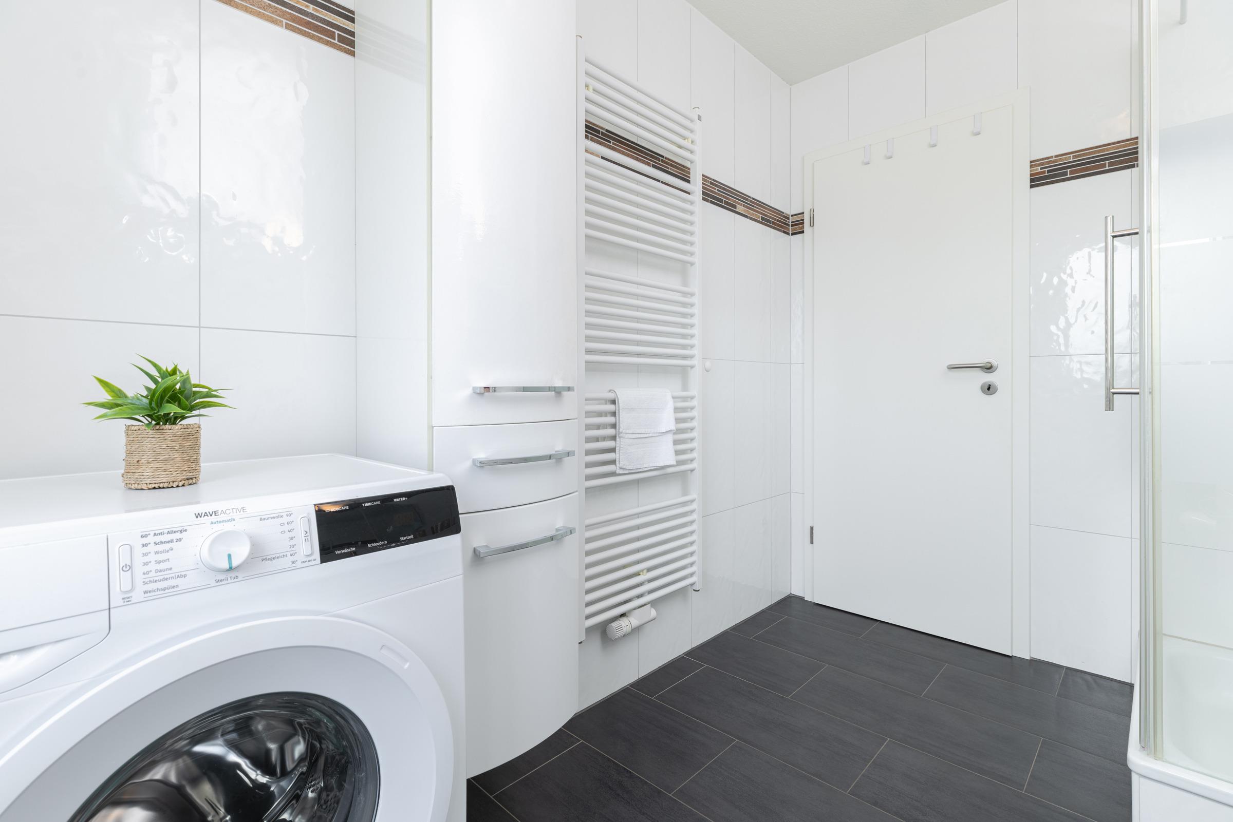 Ein PKW-Stellplatz im Carport ist für Sie reserviert. Ihre Fahrräder können Sie sicher im eigenen Fahrradabstellraum unterbringen. Zum Waschen Ihrer Urlaubsgarderobe steht Ihnen eine eigene Waschmaschine zur Verfügung.
