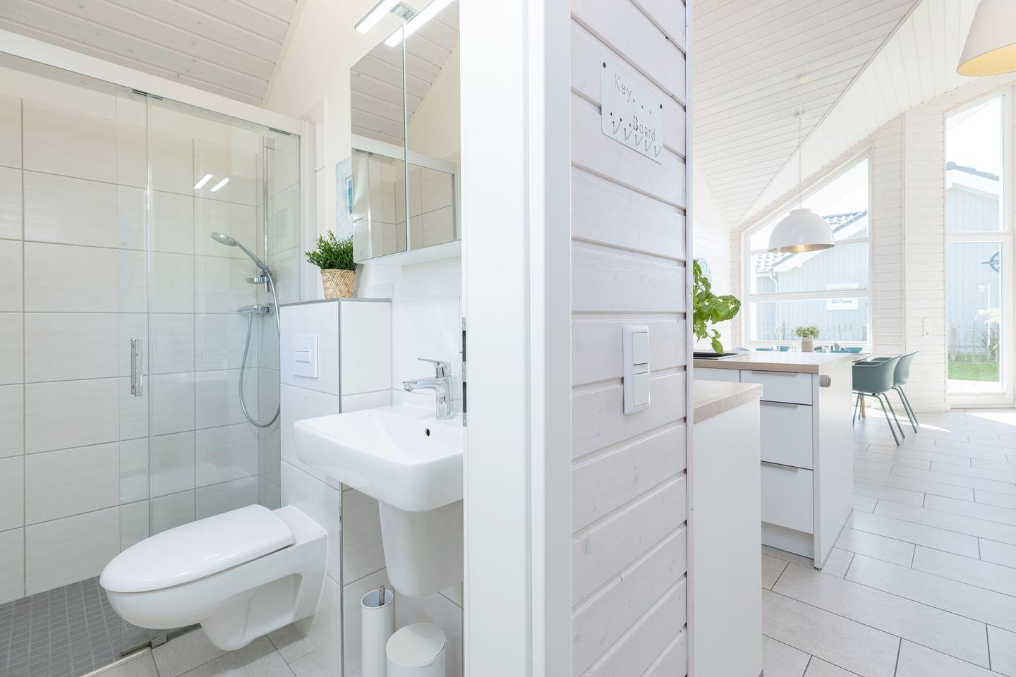 Das Haus bietet sechs Personen und zwei Hunden Platz. Durch die ebenerdige Bauweise des Hauses befinden sich im Inneren keine Treppen. Die Fußbodenheizung schafft überall eine angenehme Wärme.